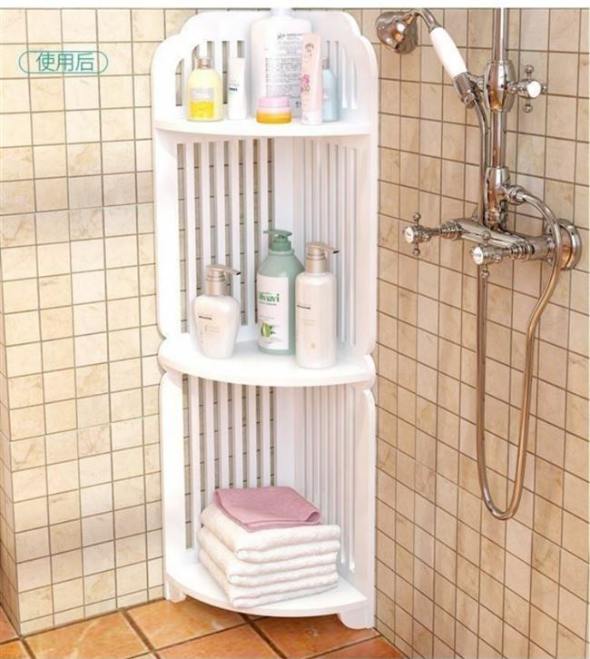 -Побланка полки на пол в ванной комнате получает бесплатный угол