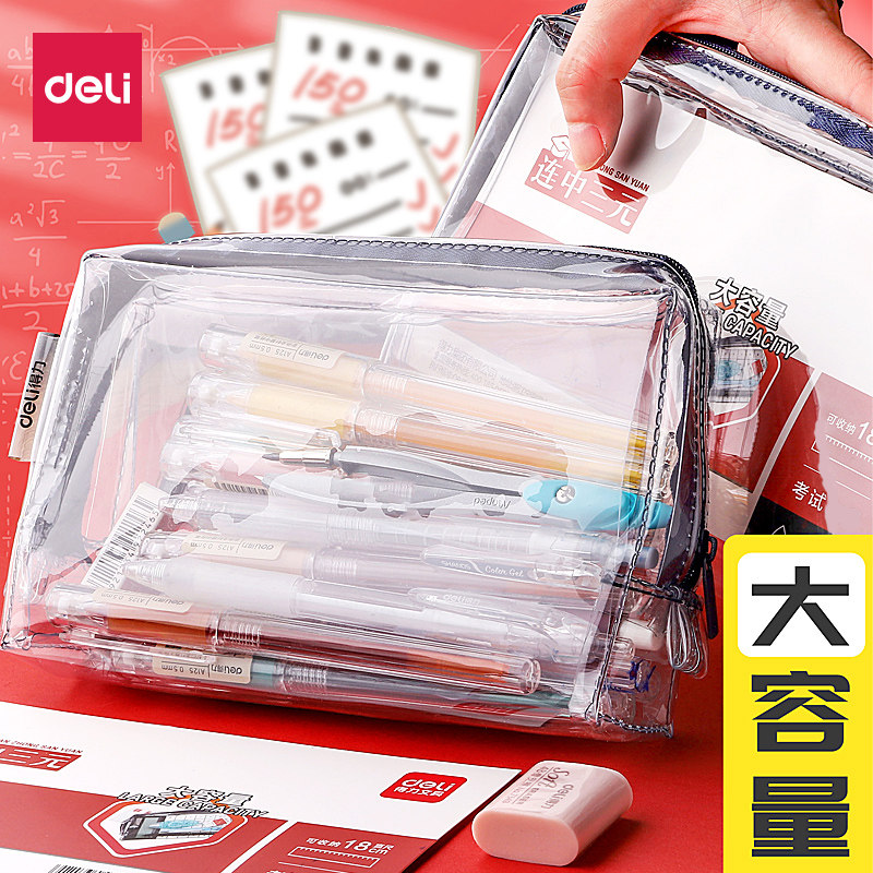 Прозрачный пенал с молнией, пластиковая водонепроницаемая вместительная и большая система хранения для школьников, брендовый комплект, простой и элегантный дизайн, для средней школы, Южная Корея, популярно в интернете