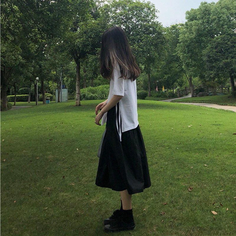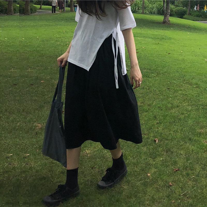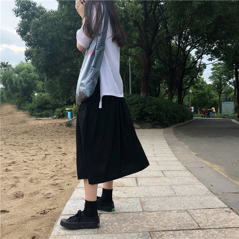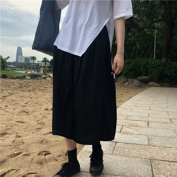 Длинная ретро хлопковая черная японская школьная юбка для школьников и студентов, А-силуэт, длина миди