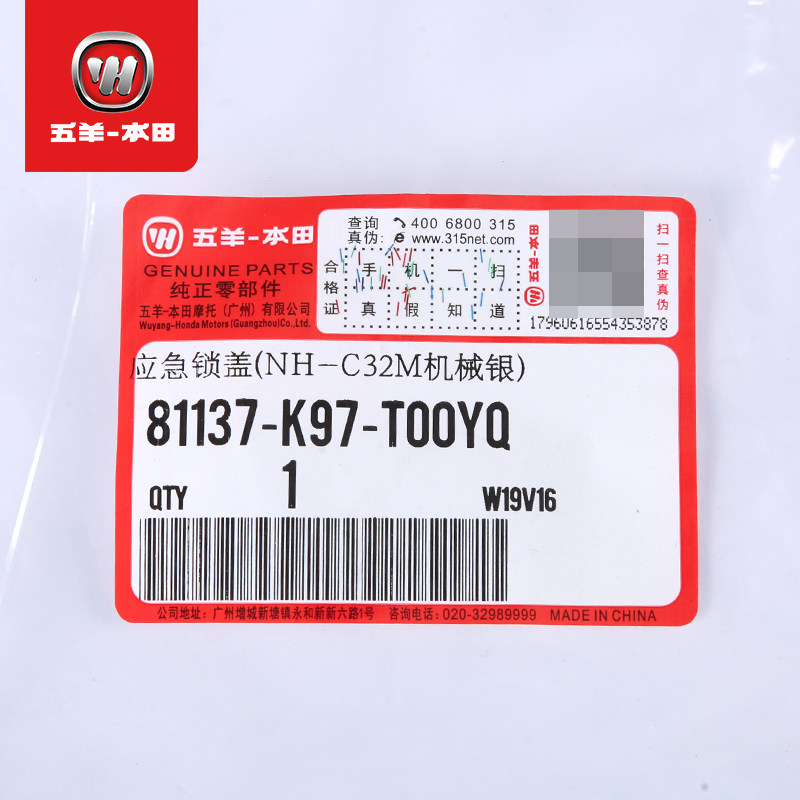 - Аварийный замок (шелковый белый цвет) Вуян Хонда