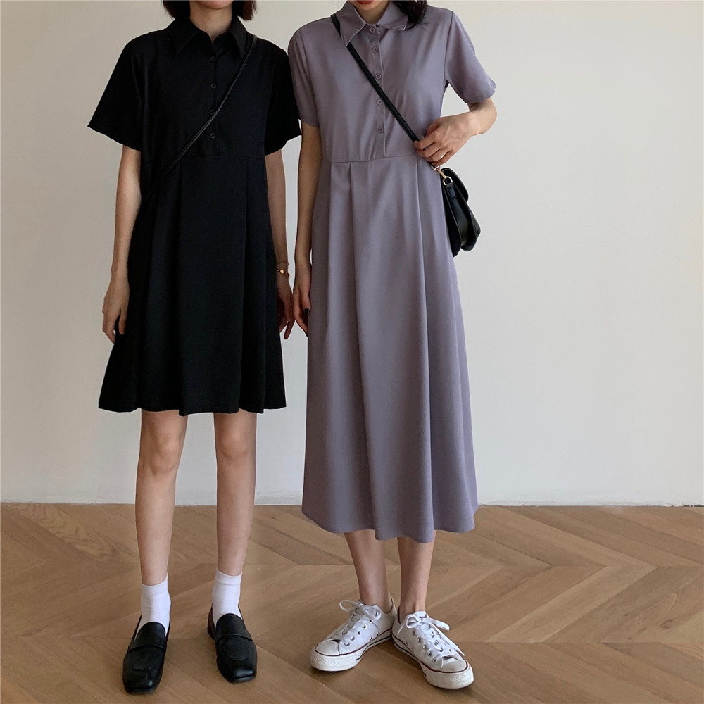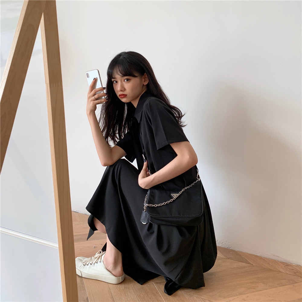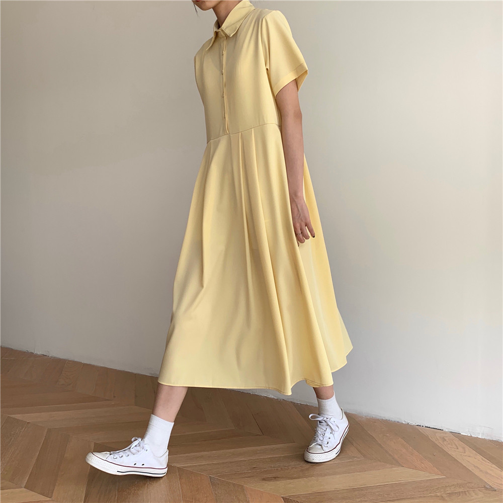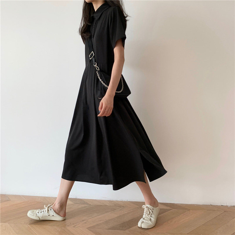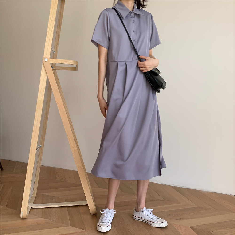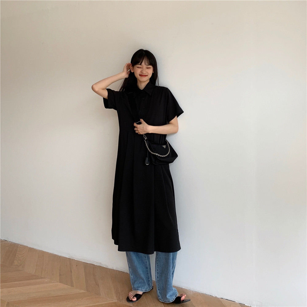 Дизайнерское платье, длинная юбка, тренд сезона, воротник поло, средней длины