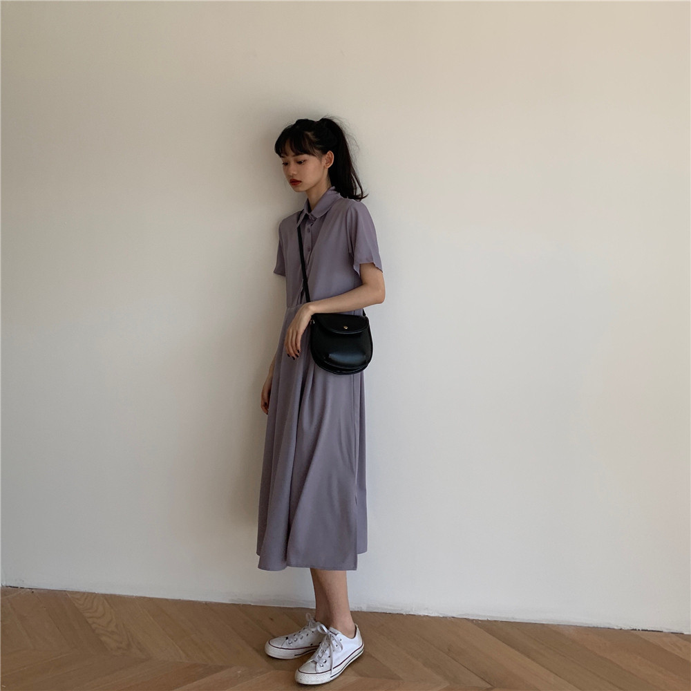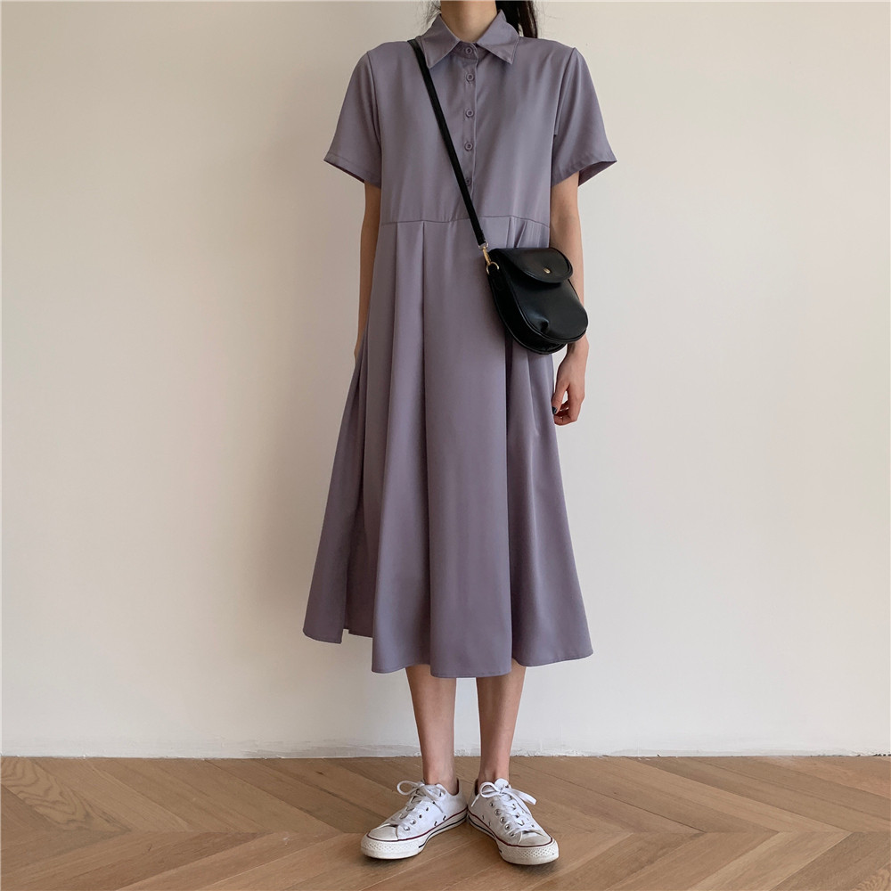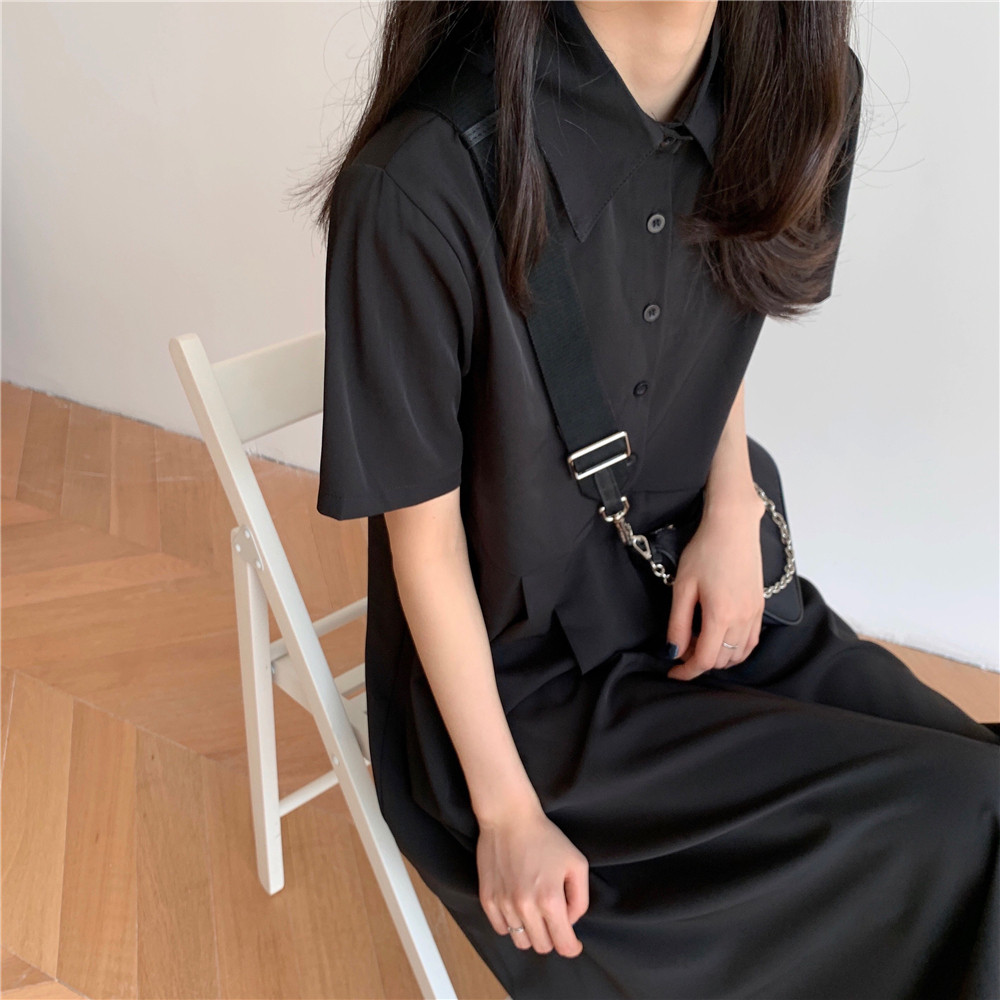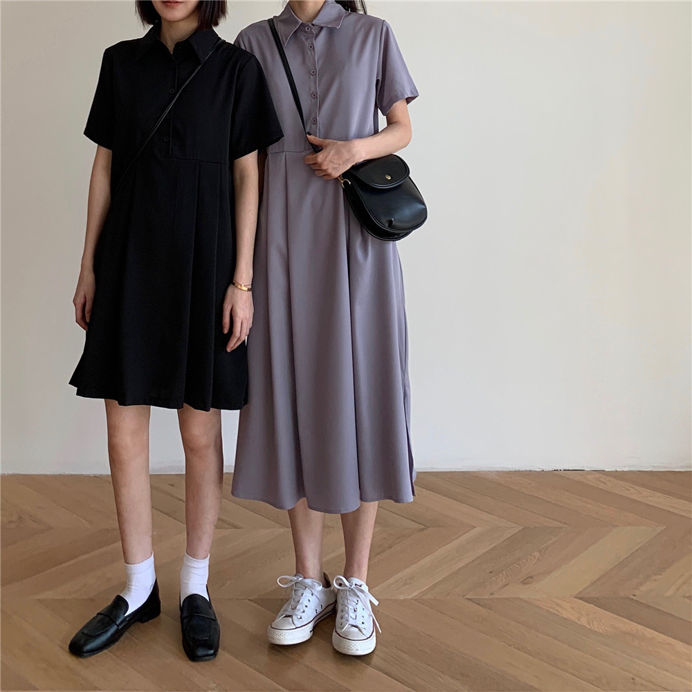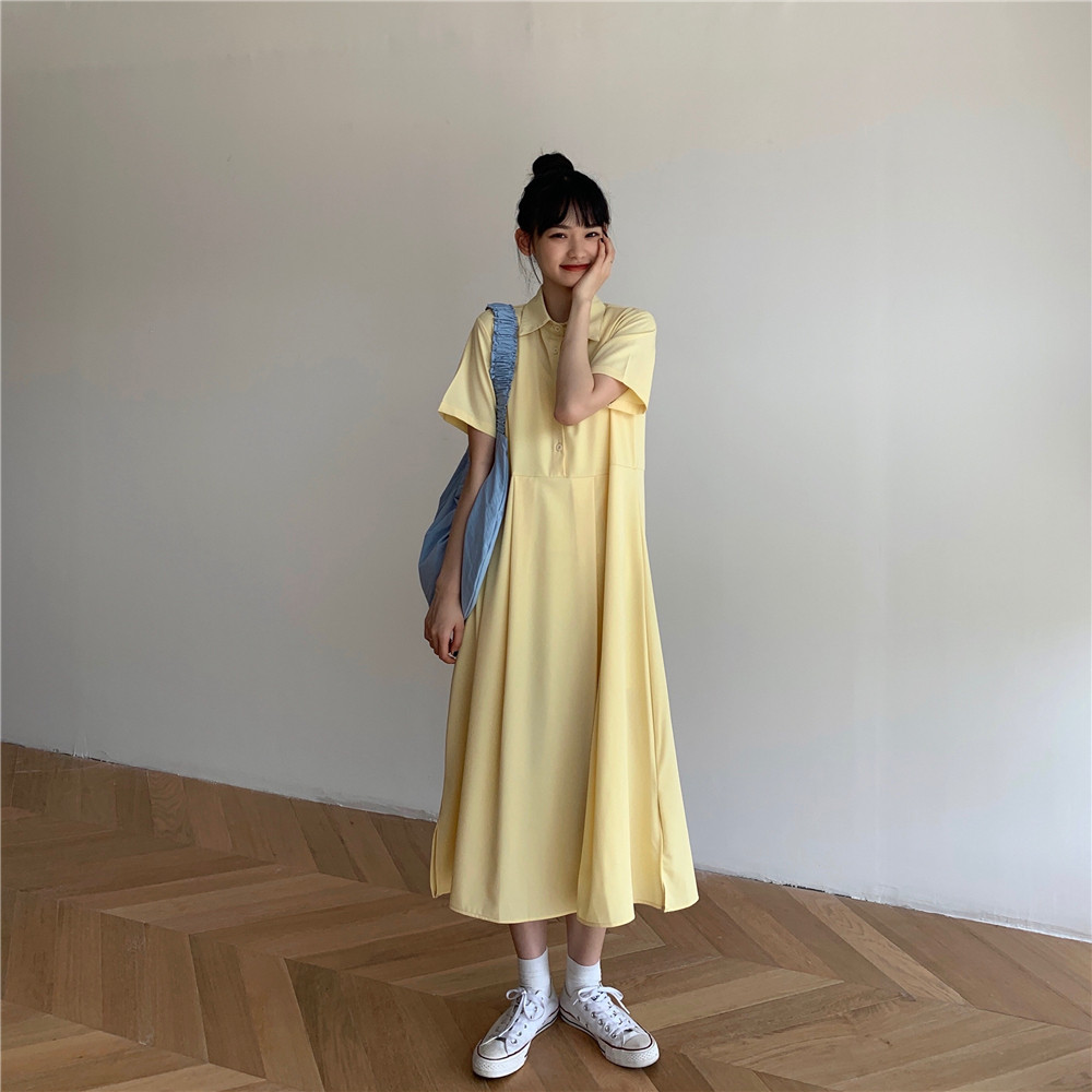 Дизайнерское платье, длинная юбка, тренд сезона, воротник поло, средней длины
