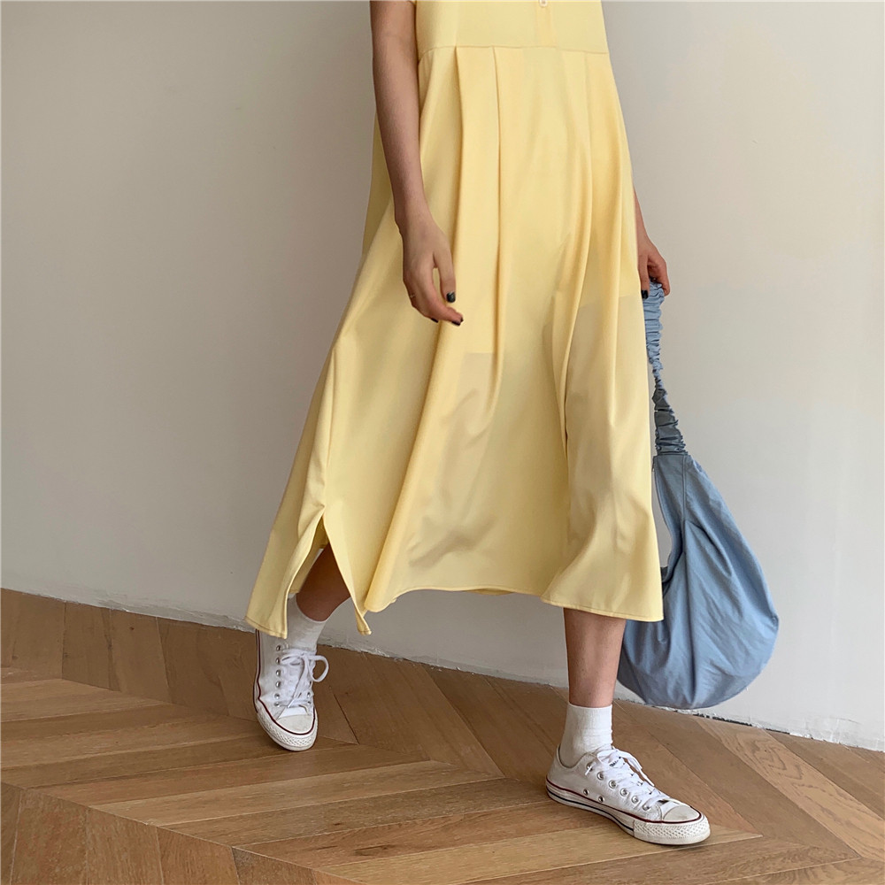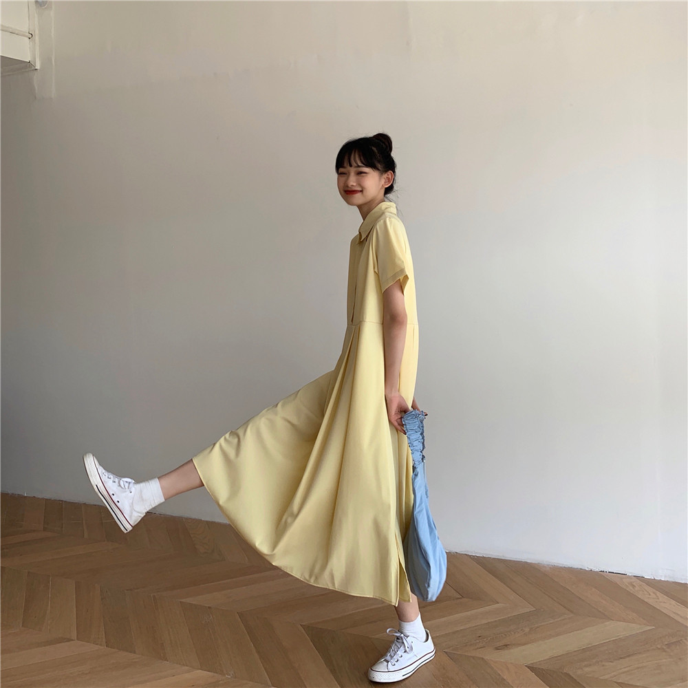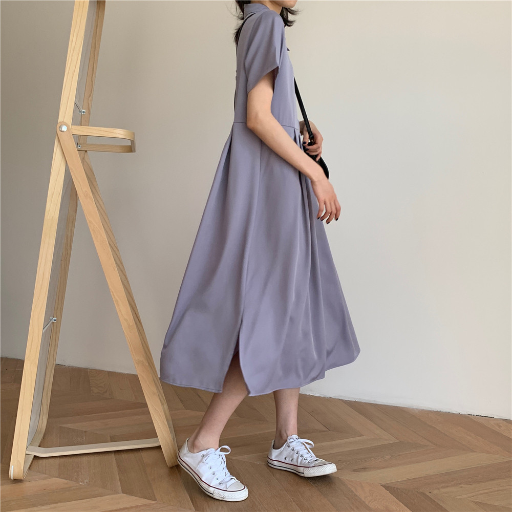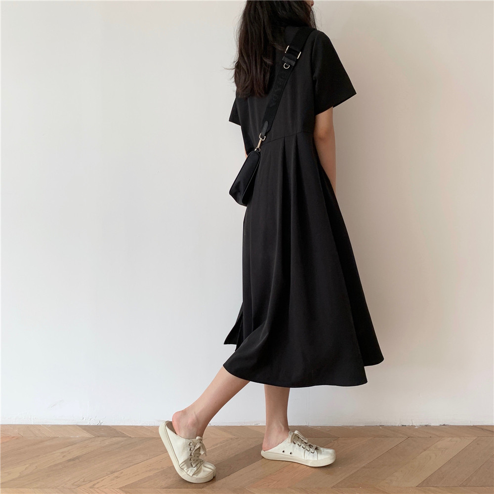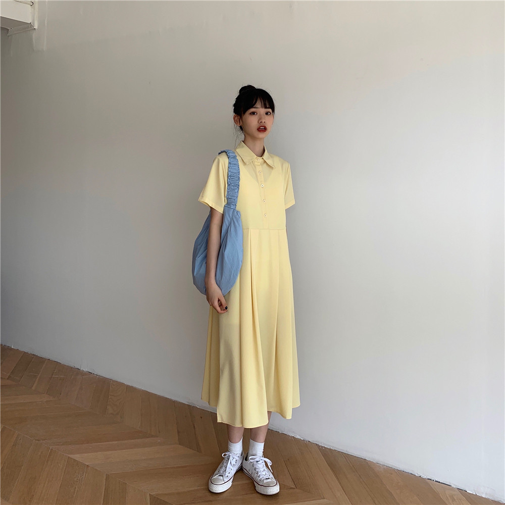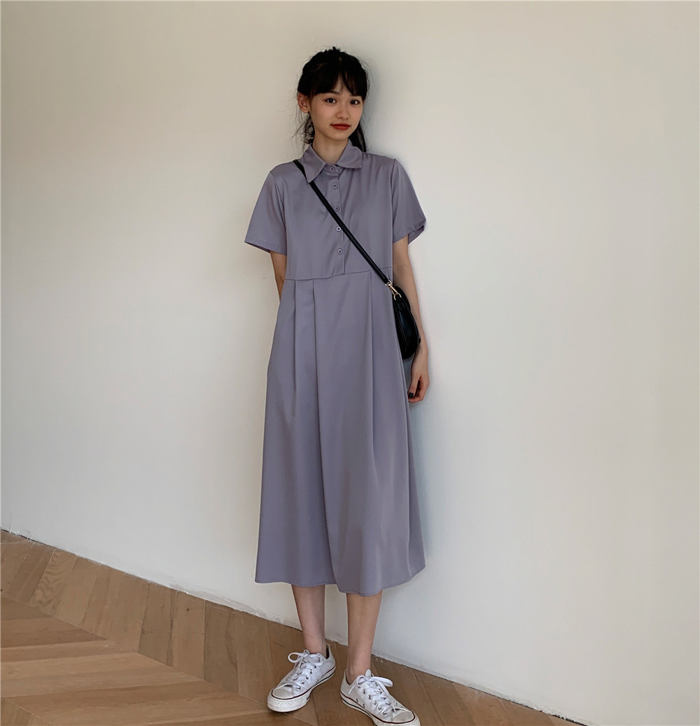 Дизайнерское платье, длинная юбка, тренд сезона, воротник поло, средней длины