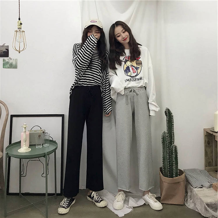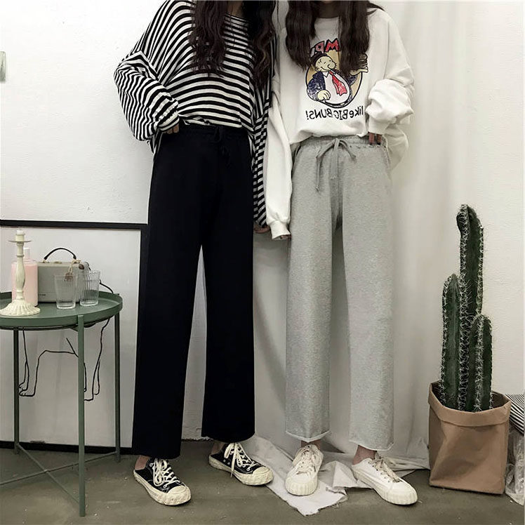 Осенние спортивные штаны для школьников для отдыха, высокая талия, свободный прямой крой