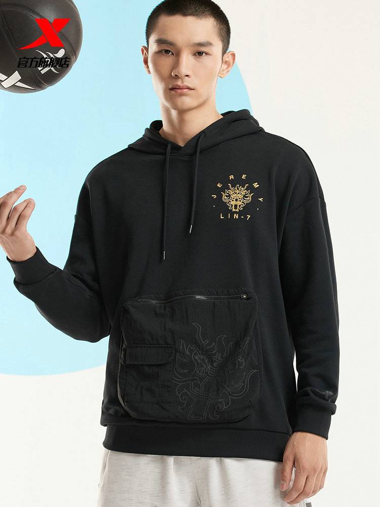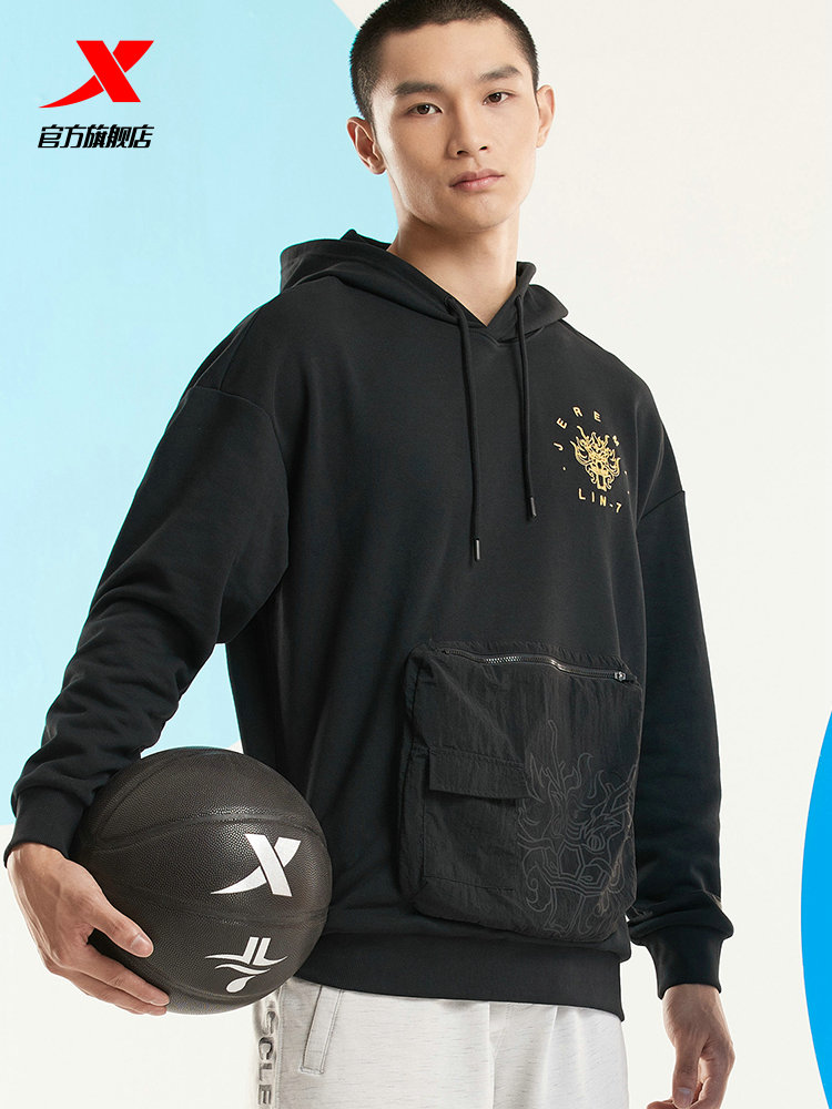 Xtep, спортивная демисезонная баскетбольная толстовка с капюшоном, осенняя, тренд сезона, свободный крой