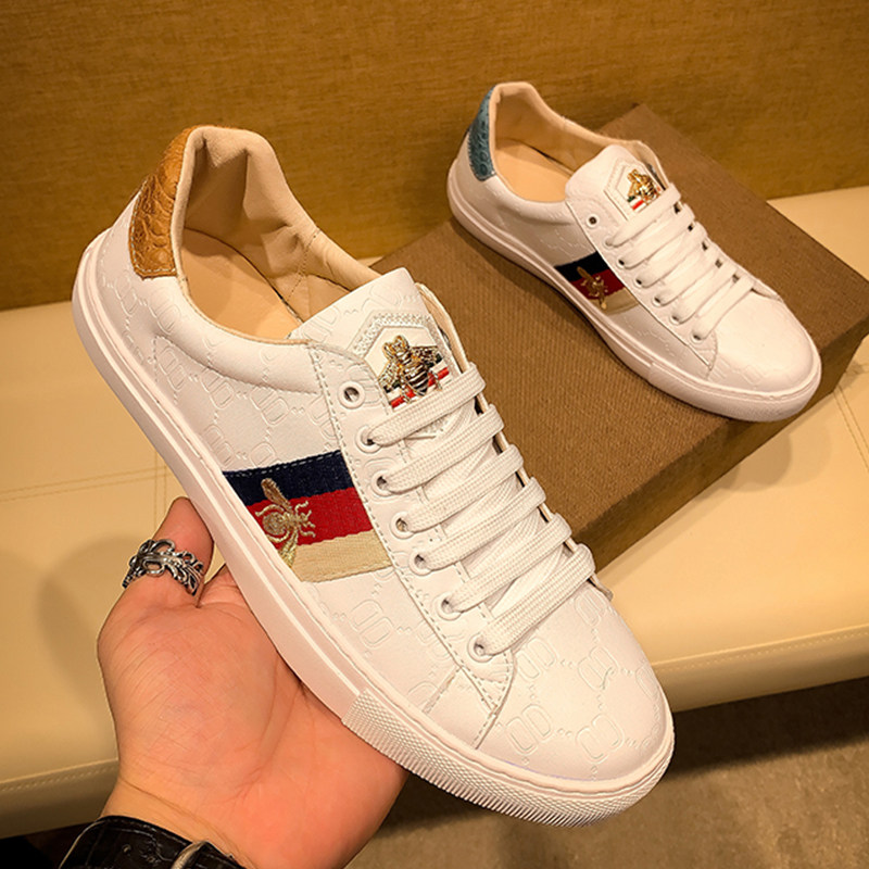 Европейские летние кроссовки из натуральной кожи с вышивкой пчел для мужчин и женщин, модные брендовые туфли, мужская обувь, универсальные люксовые бренды