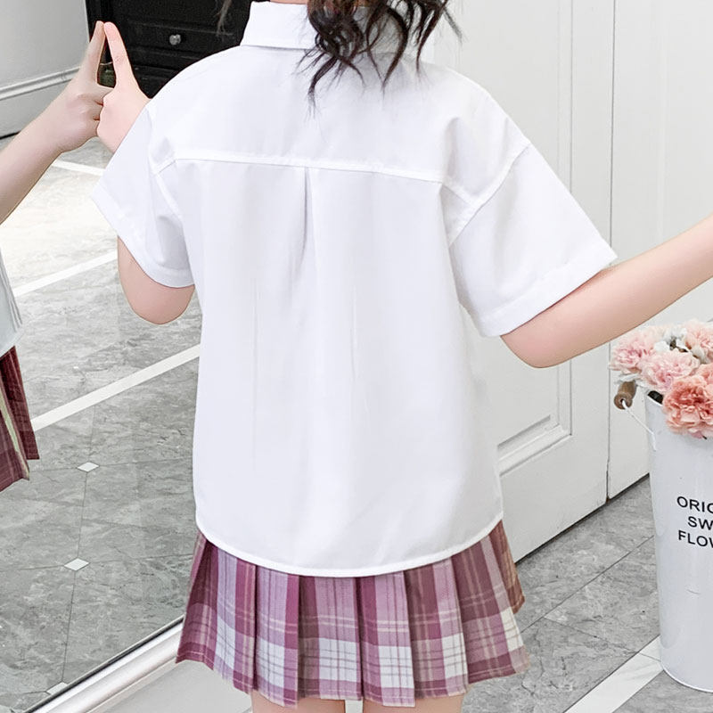 Летняя детская рубашка для школьников и студентов, короткий рукав, детская одежда, с вышивкой, подходит для подростков