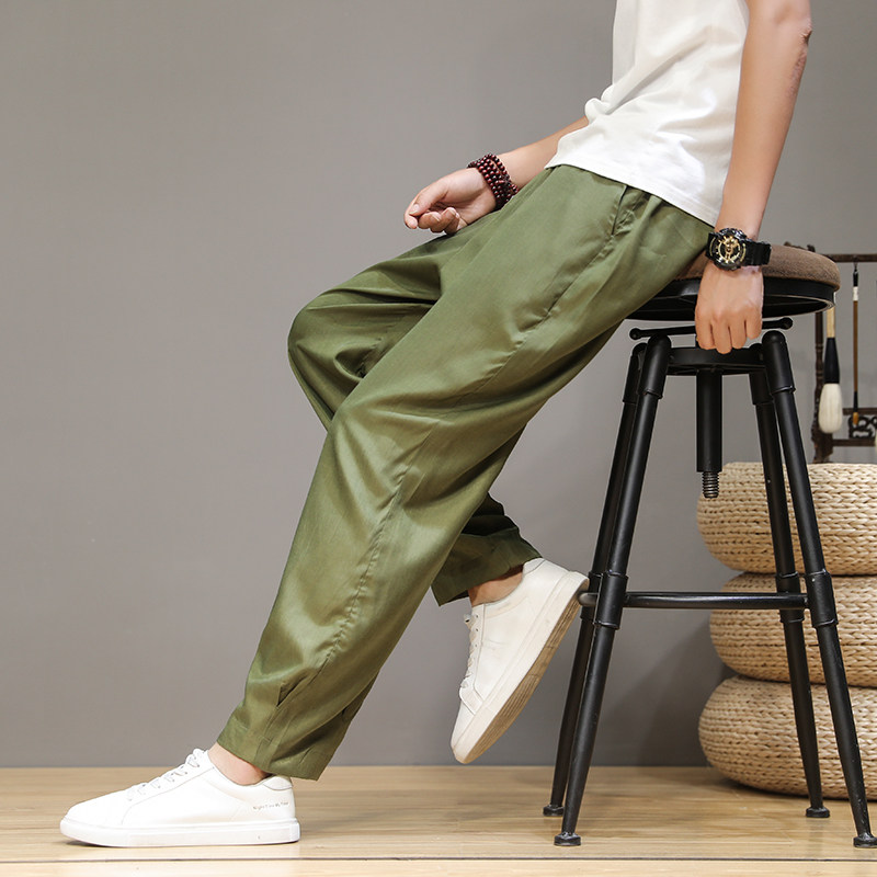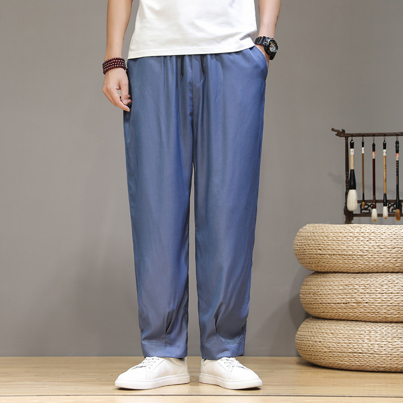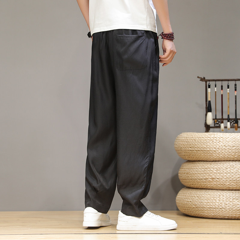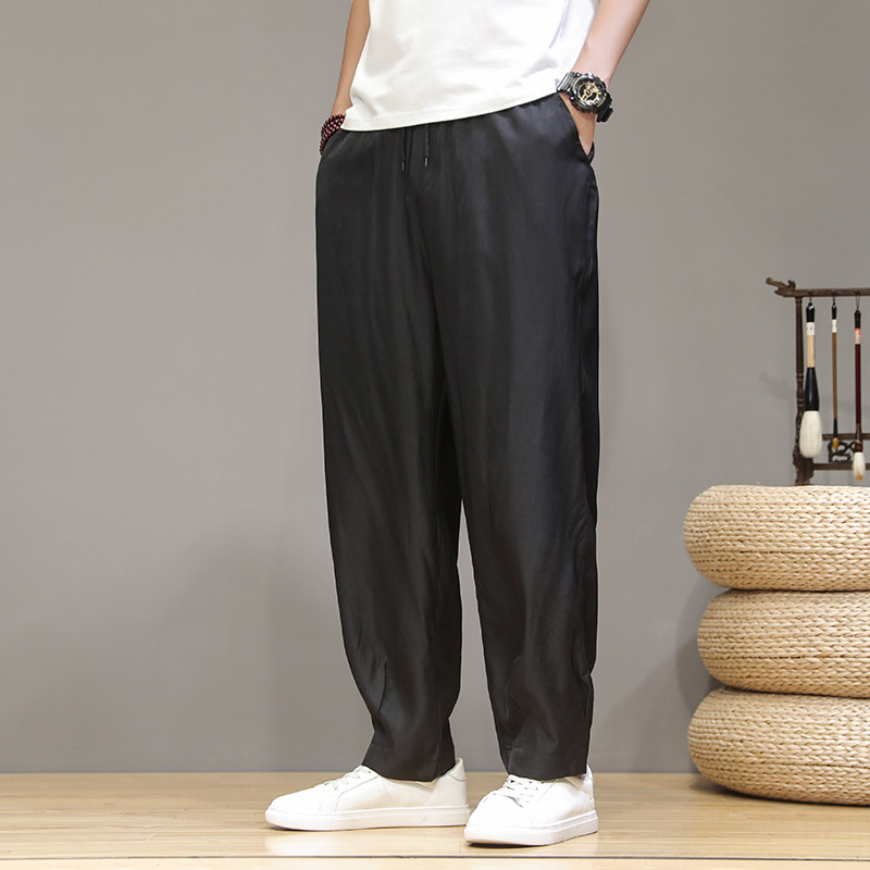 Летние тонкие шелковые ретро штаны, оверсайз, китайский стиль, большой размер, свободный прямой крой