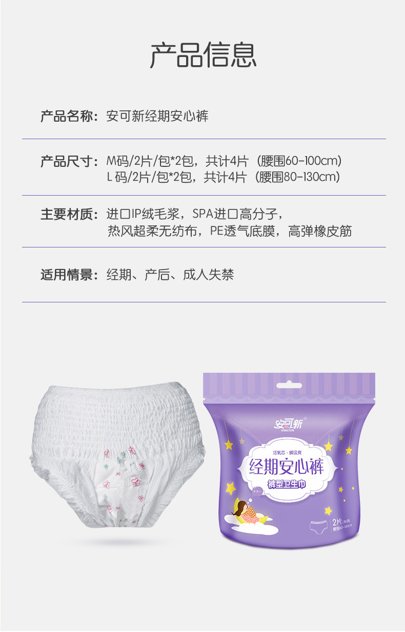 安可新 Штаны, большая гигиеническая прокладка, ночное использование, большой размер