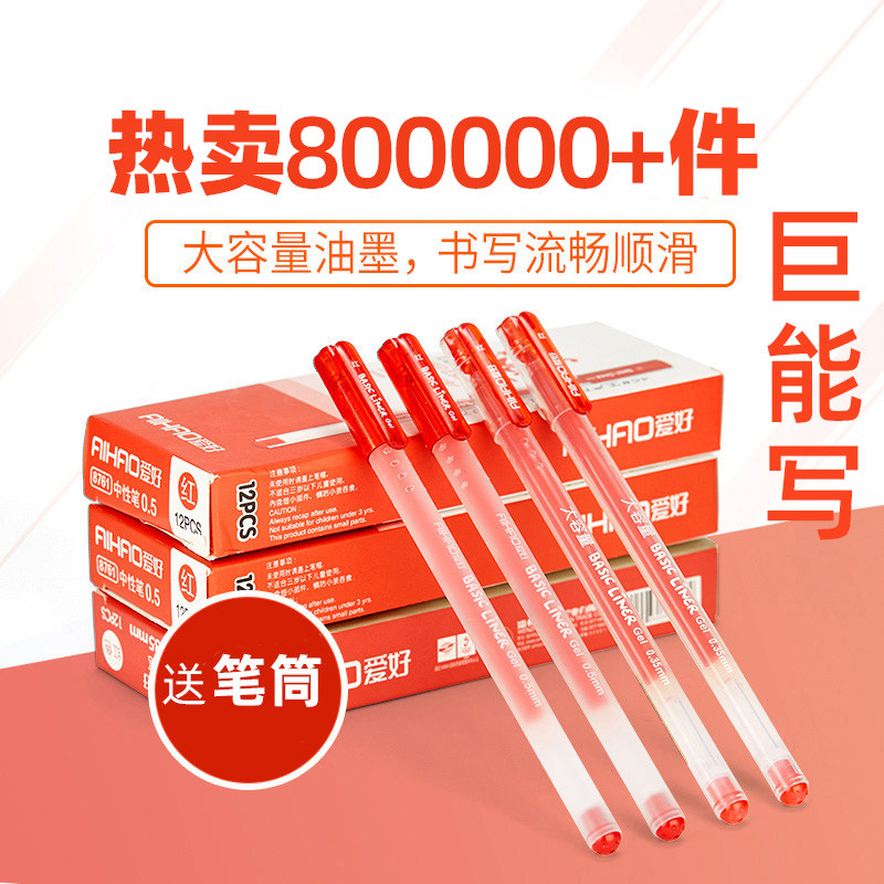 爱好 Вместительная и большая ручка-роллер для школьников, одноразовая ручка на водной основе, красная черная шариковая ручка