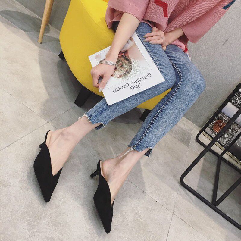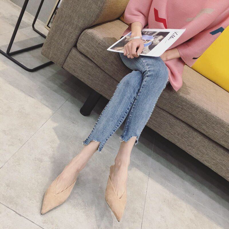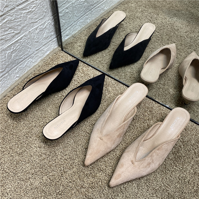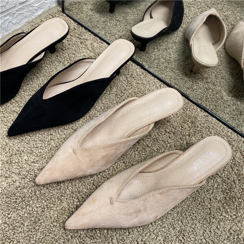 Южная Корея INS NEW LOVED TOE HILD HIEL Женские тапочки 2025 весенний пакет с сексуальными кубками замша простые тапочки модные