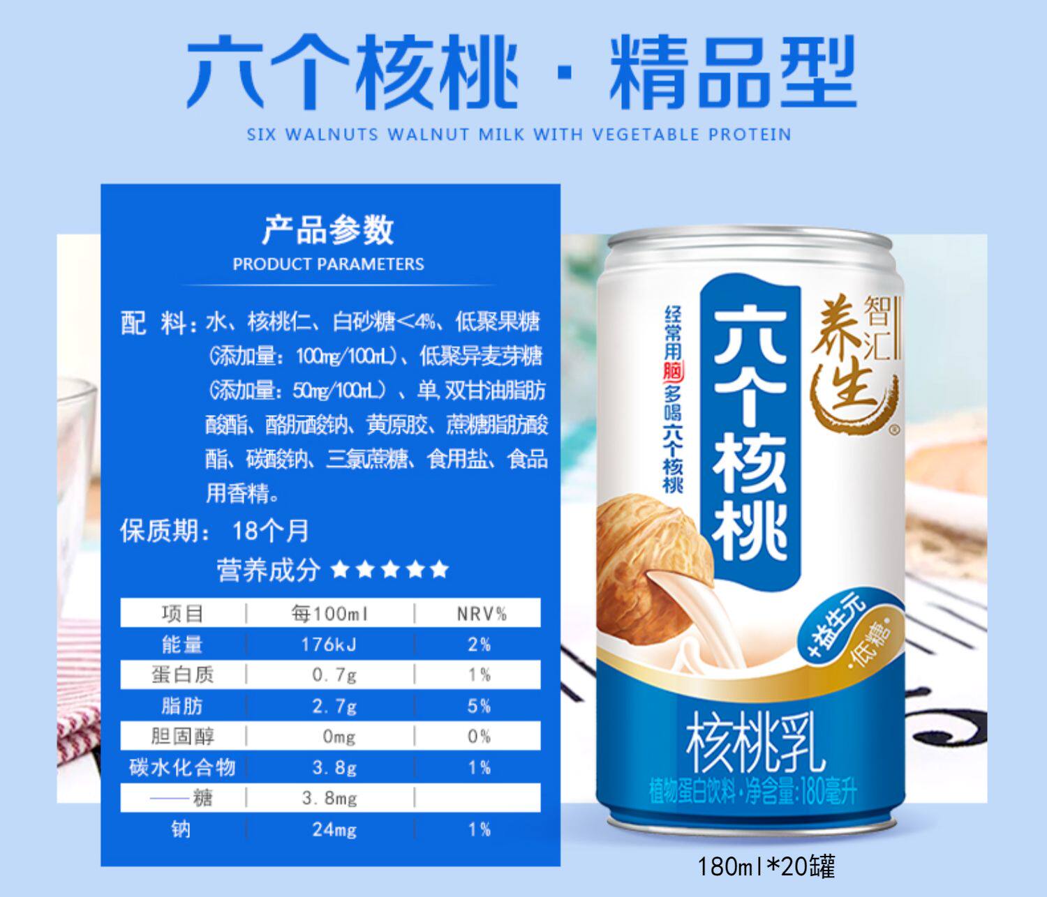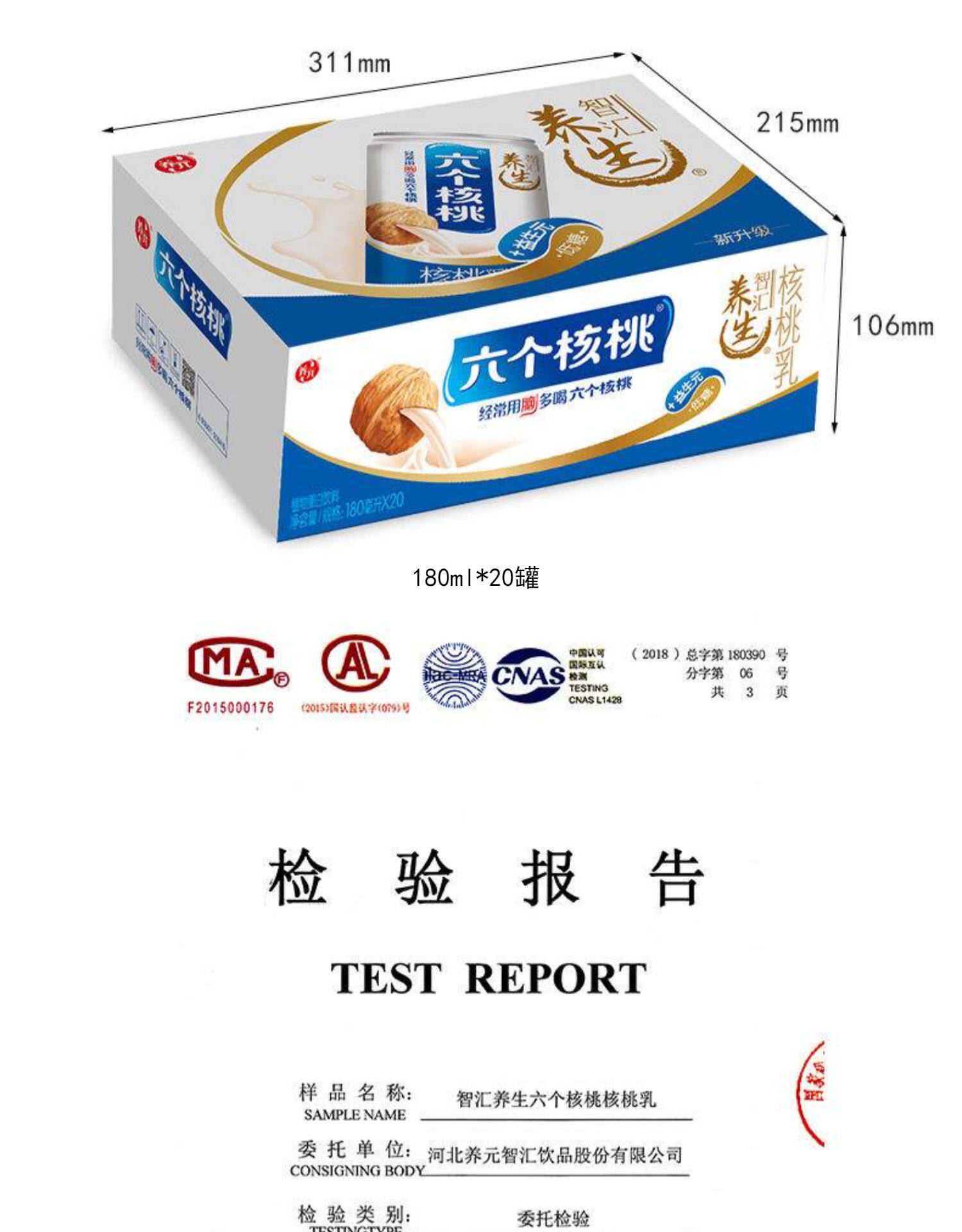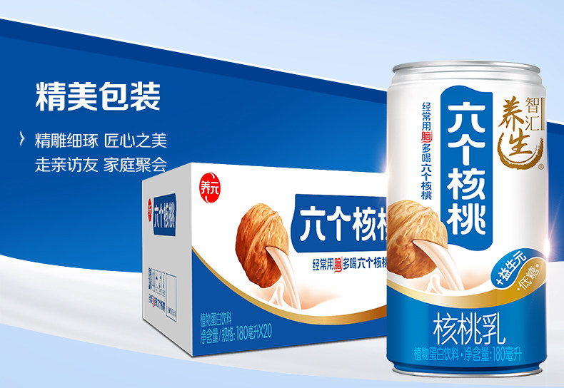 Янгуань шесть ореховых ореховых молока тип 180 мл*20 банок шесть грецких орехов целая коробка 24 банки/20 банок/15 банок