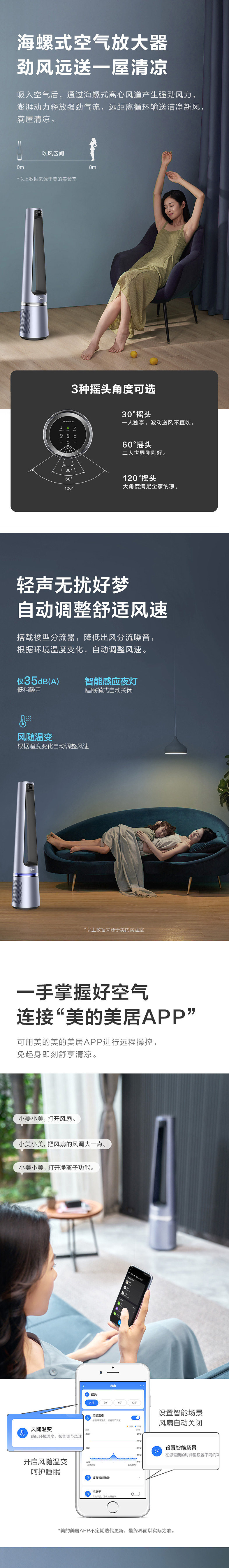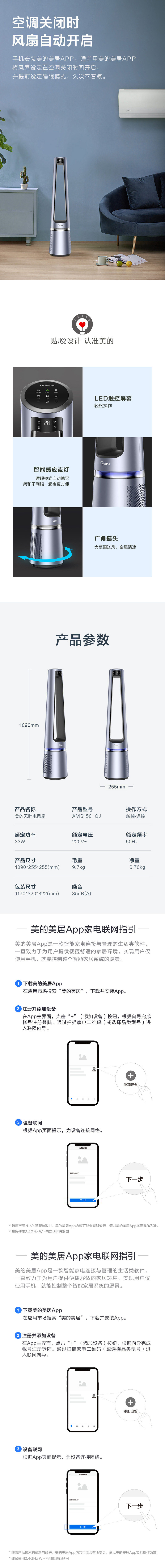 Вентилятор вентилятора вентилятора Midea вентилятор вентилятор безлистных наводнений частота частота частота частого фандегида WIG WIG WIPI Smart Fean AMS150-CJ