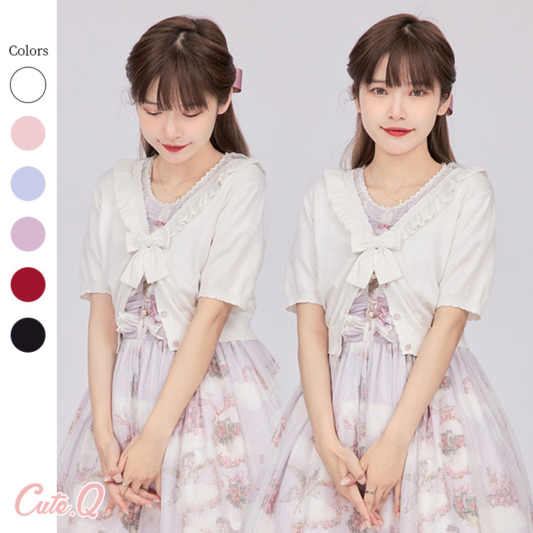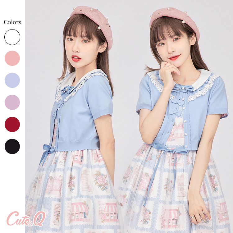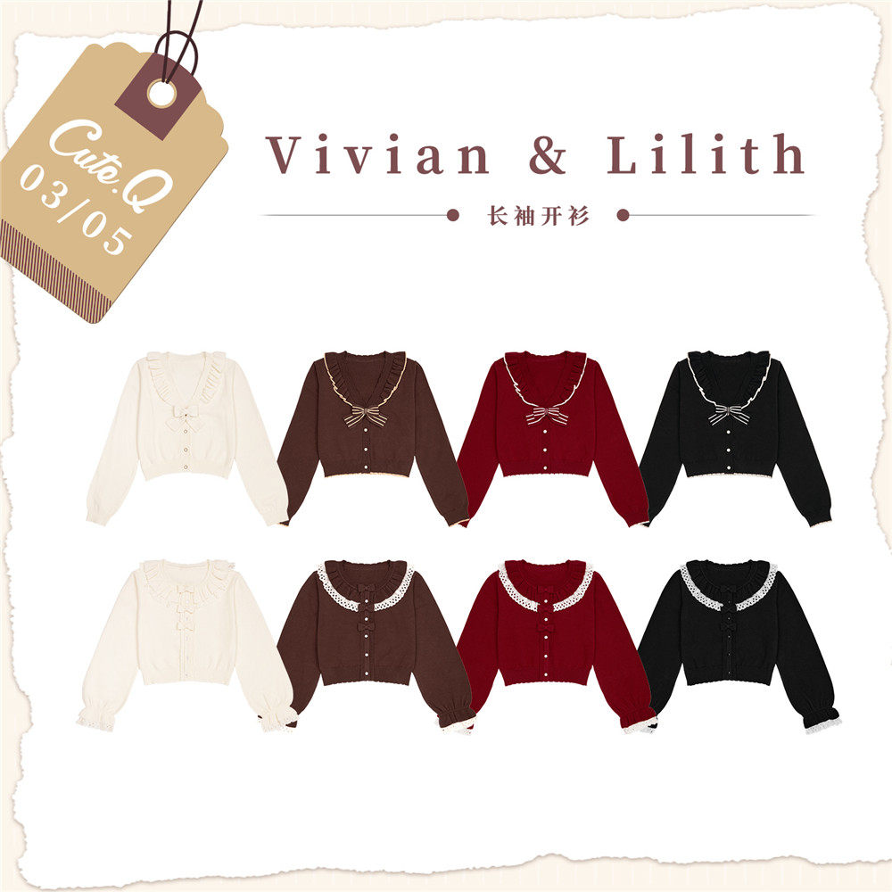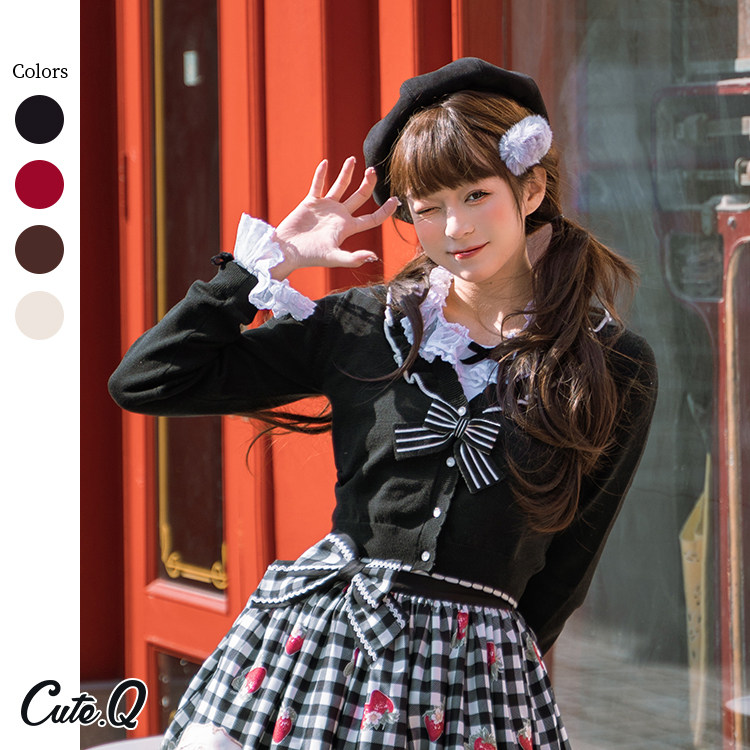 [Spot] Лилит вязаная кардиганская полоса кланяется милый оригинальный лолита кардиган внутри |