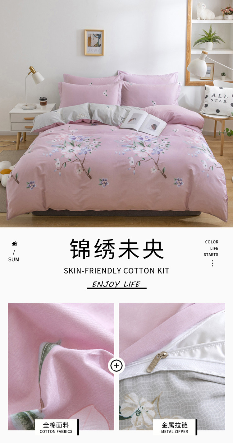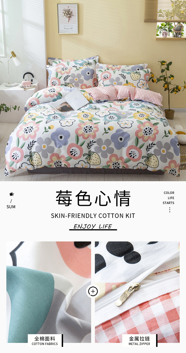 Хлопковый комплект, пододеяльник, простыня для школьников и студентов, популярно в интернете, 4 предмета, 3 предмета