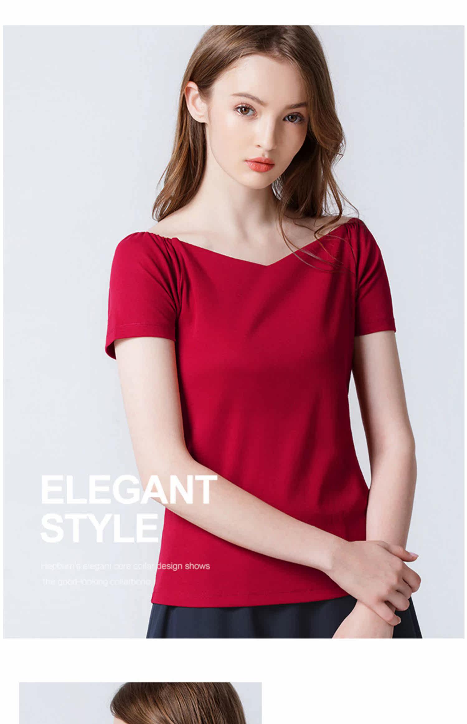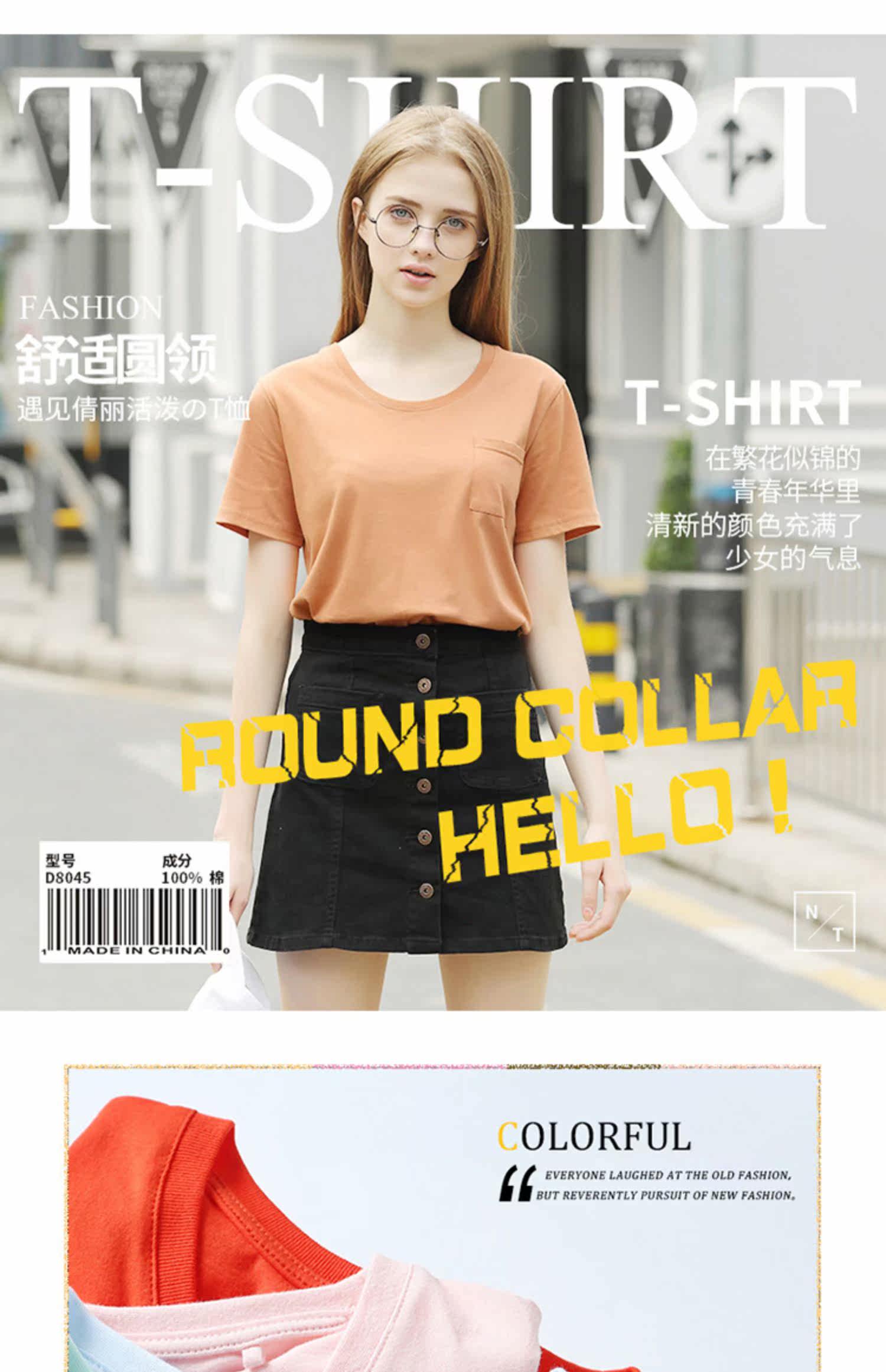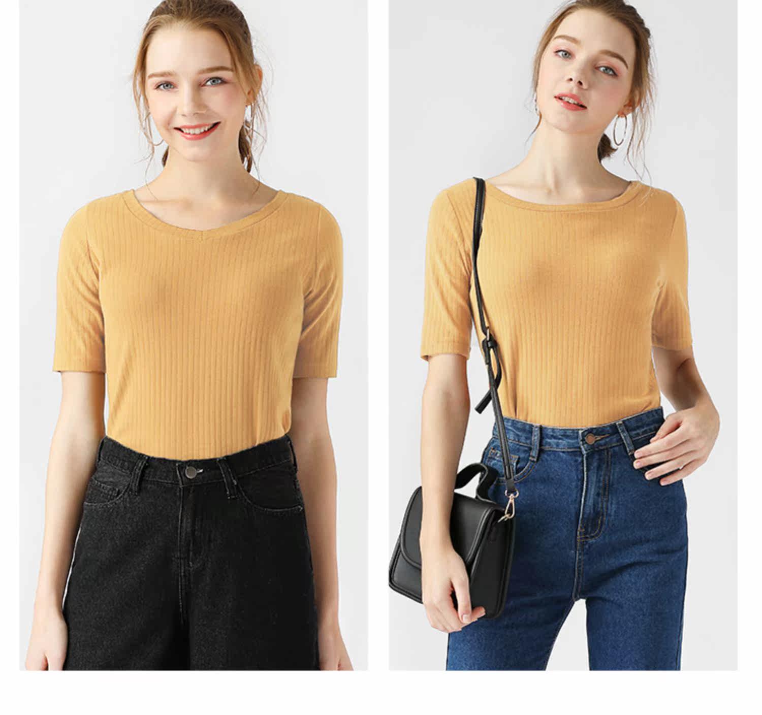 艾米恋 Однотонная футболка с коротким рукавом с круглым воротником, базовая трикотажная рубашка, облегающий крой