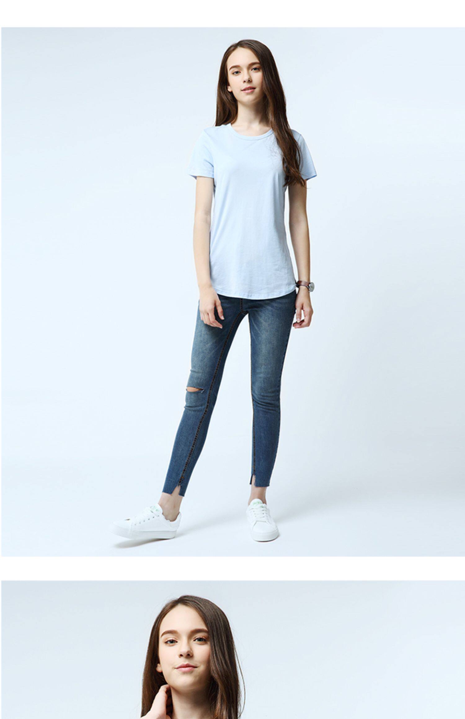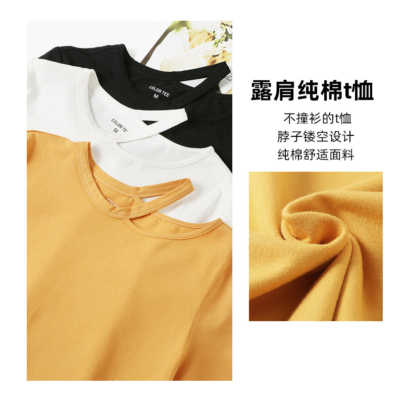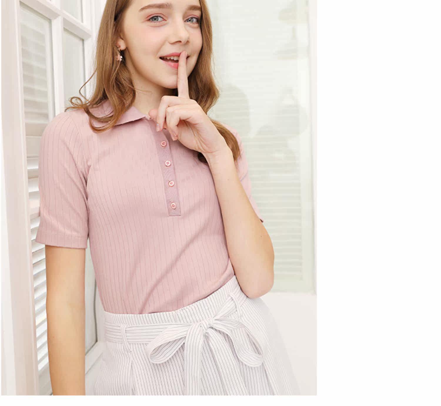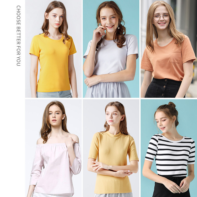 艾米恋 Однотонная футболка с коротким рукавом с круглым воротником, базовая трикотажная рубашка, облегающий крой