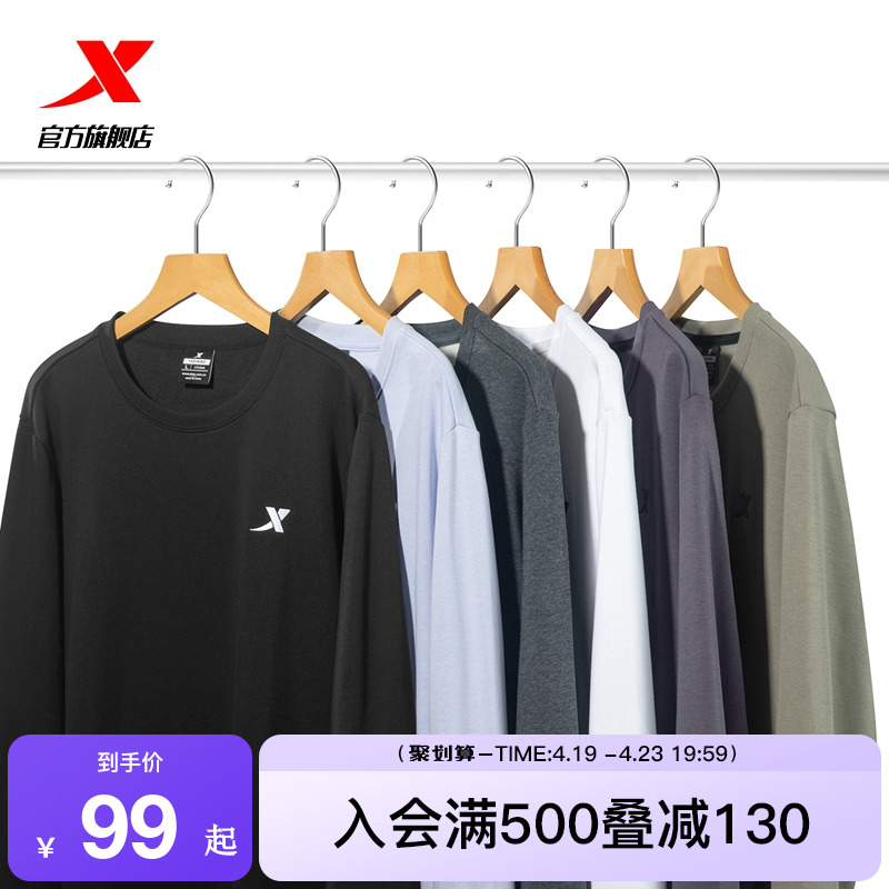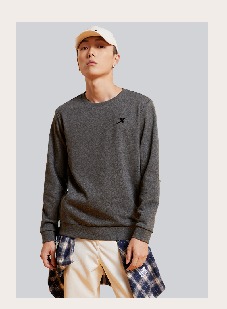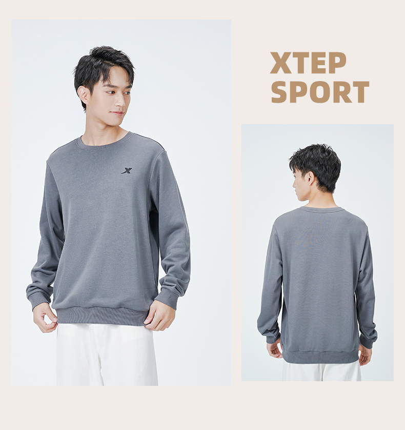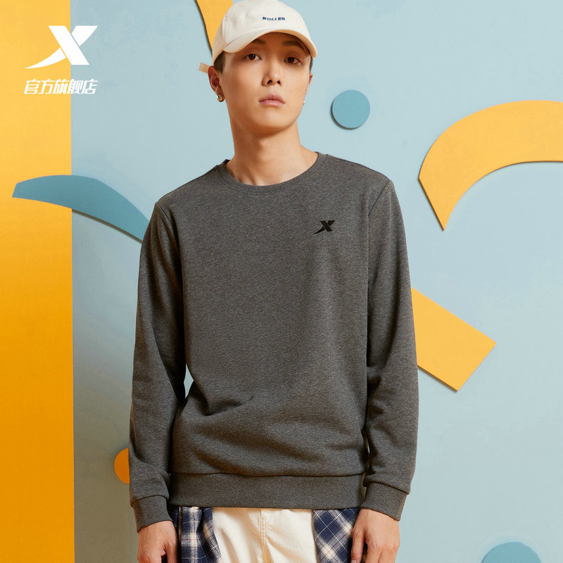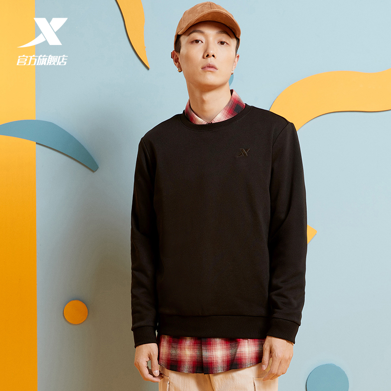 Xtep, мужская демисезонная утепленная толстовка, осенний спортивный костюм для отдыха, удерживающий тепло лонгслив, круглый воротник