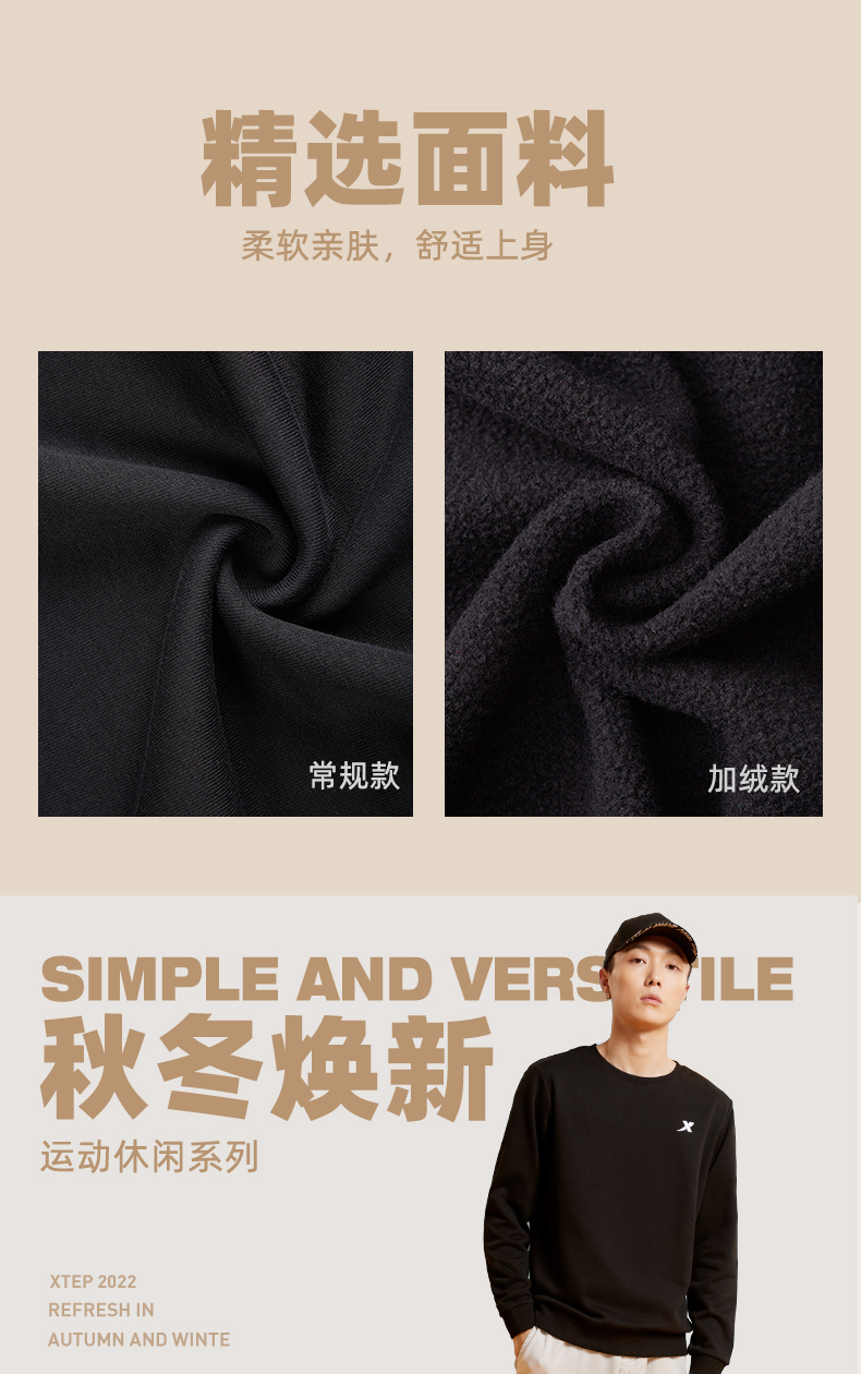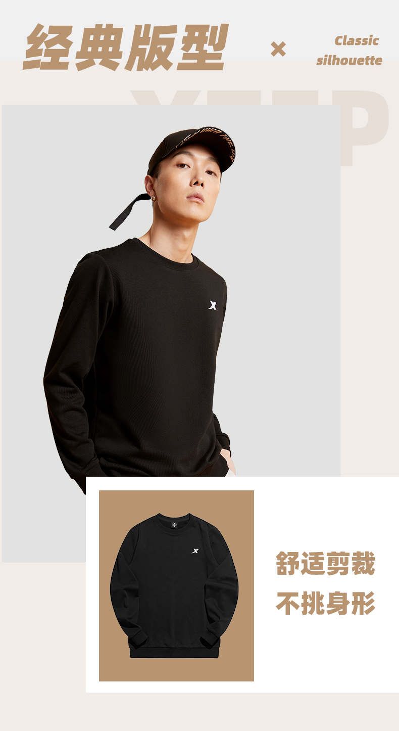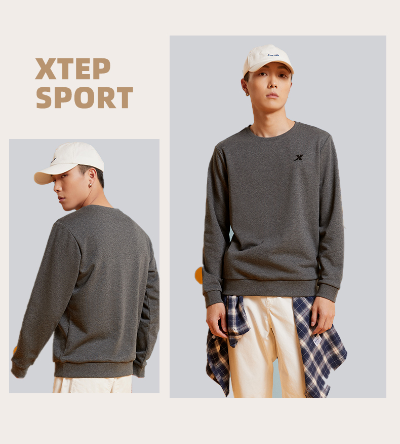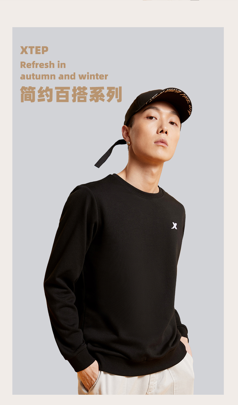 Xtep, мужская демисезонная утепленная толстовка, осенний спортивный костюм для отдыха, удерживающий тепло лонгслив, круглый воротник