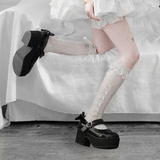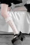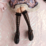 Милые кружевные носки с бантиком, стиль Лолита, средней длины, подходит для подростков, осенние