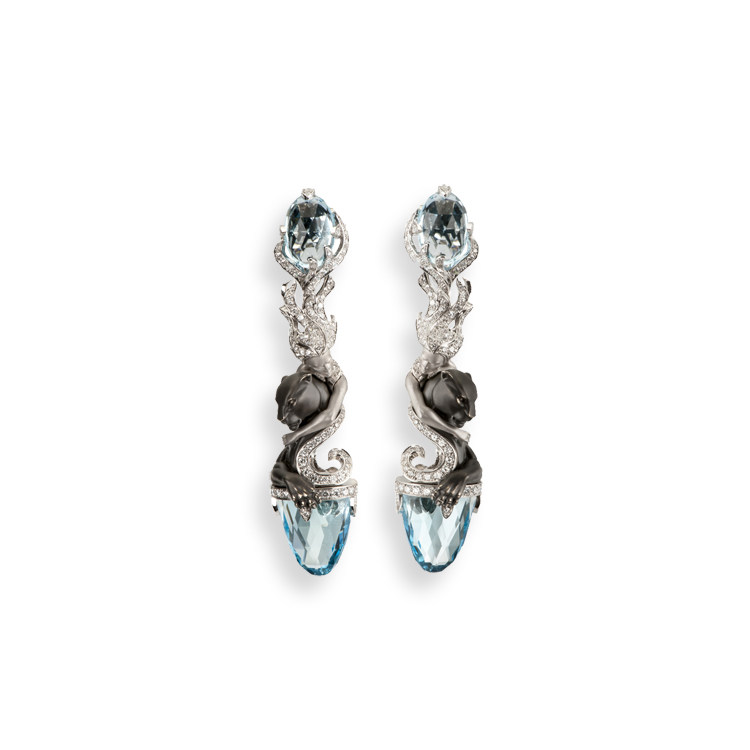Белое золото 18 кт, бриллианты и голубые топаз