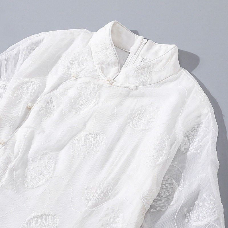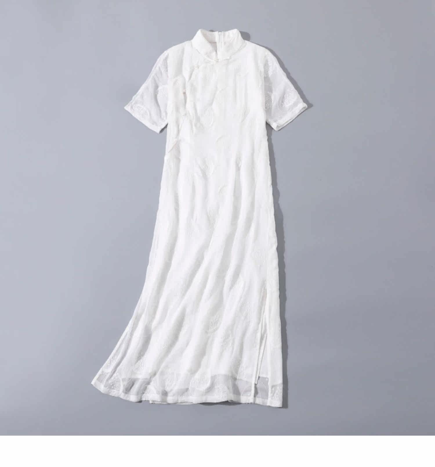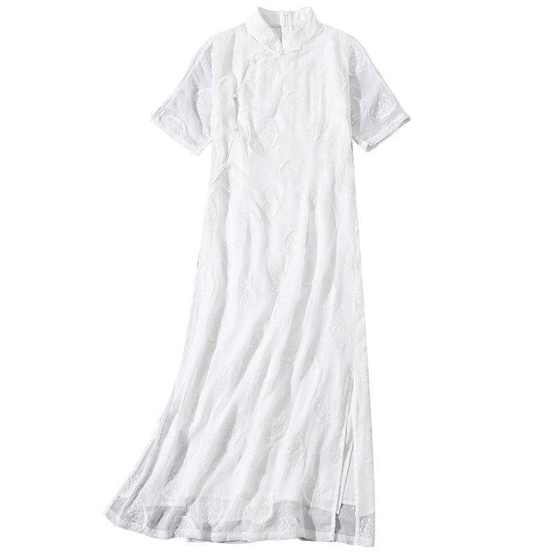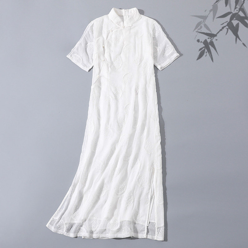 Летнее ретро ципао, белое платье, китайский стиль