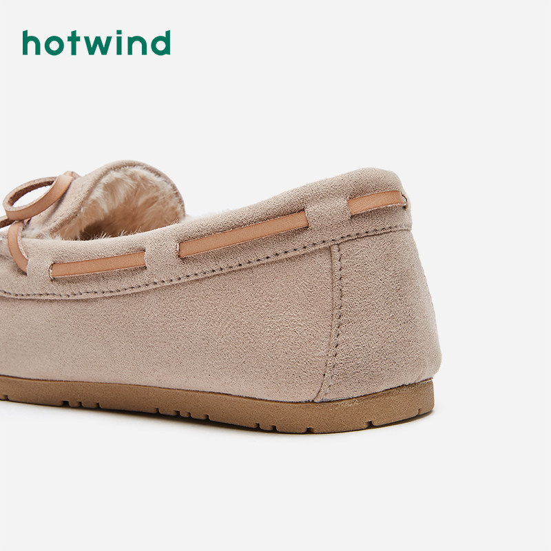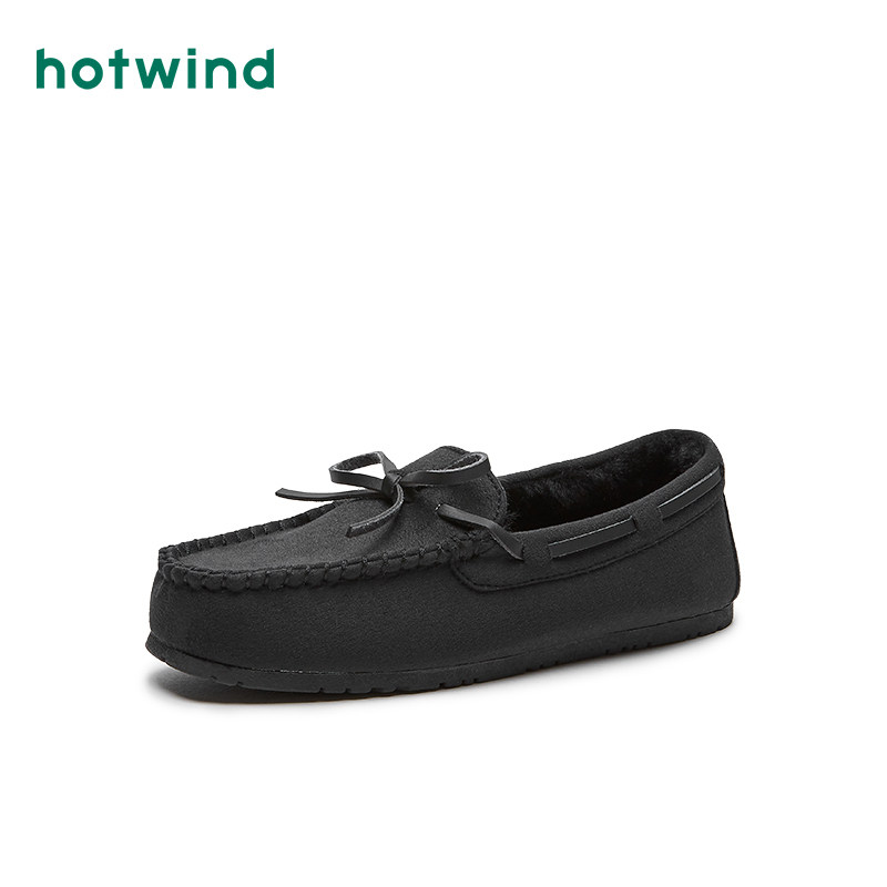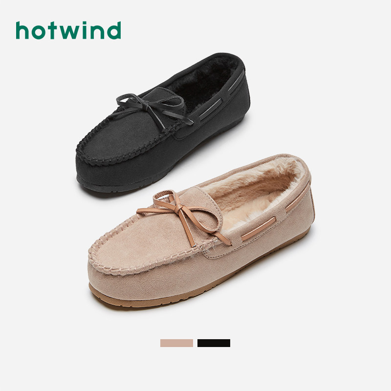 Hotwind/热风 Doudou Shoes, женские бархатные теплые туфли на плоской подошве, осень-зима 2020, новые меховые туфли черного цвета