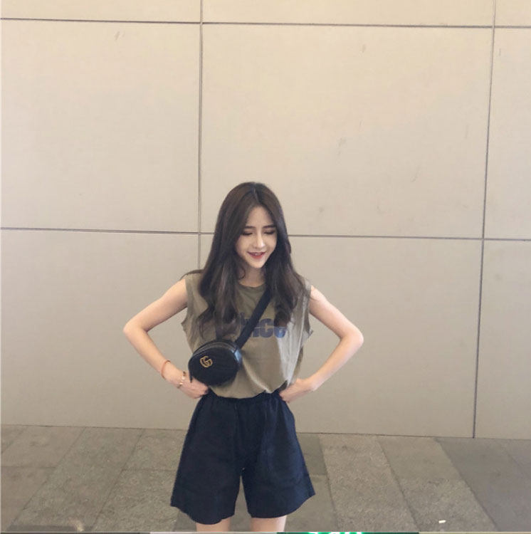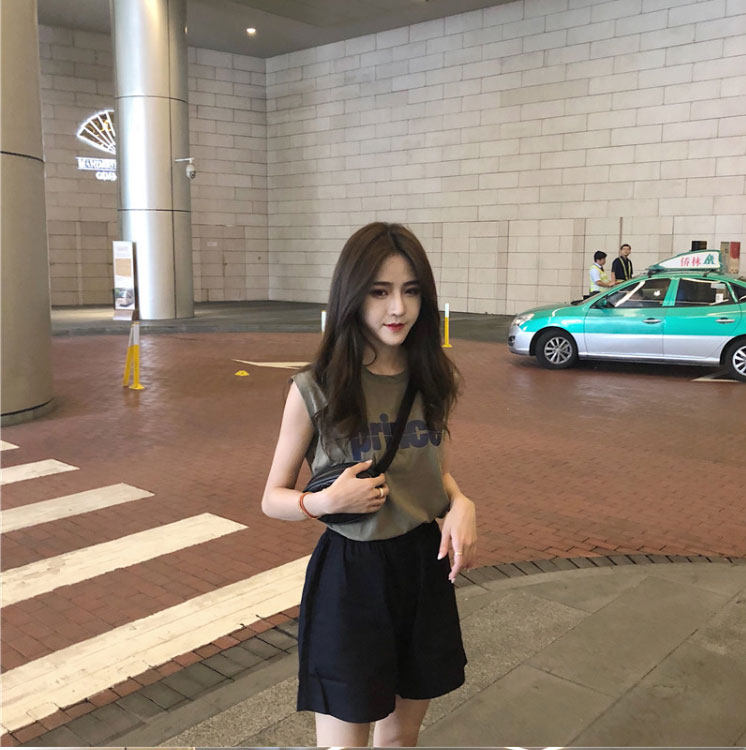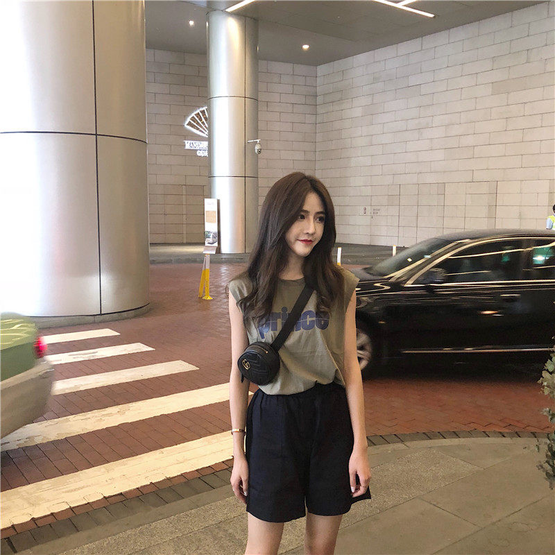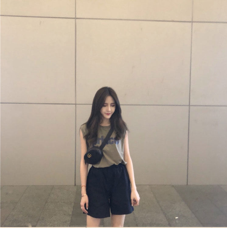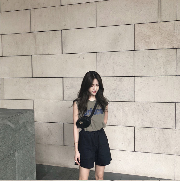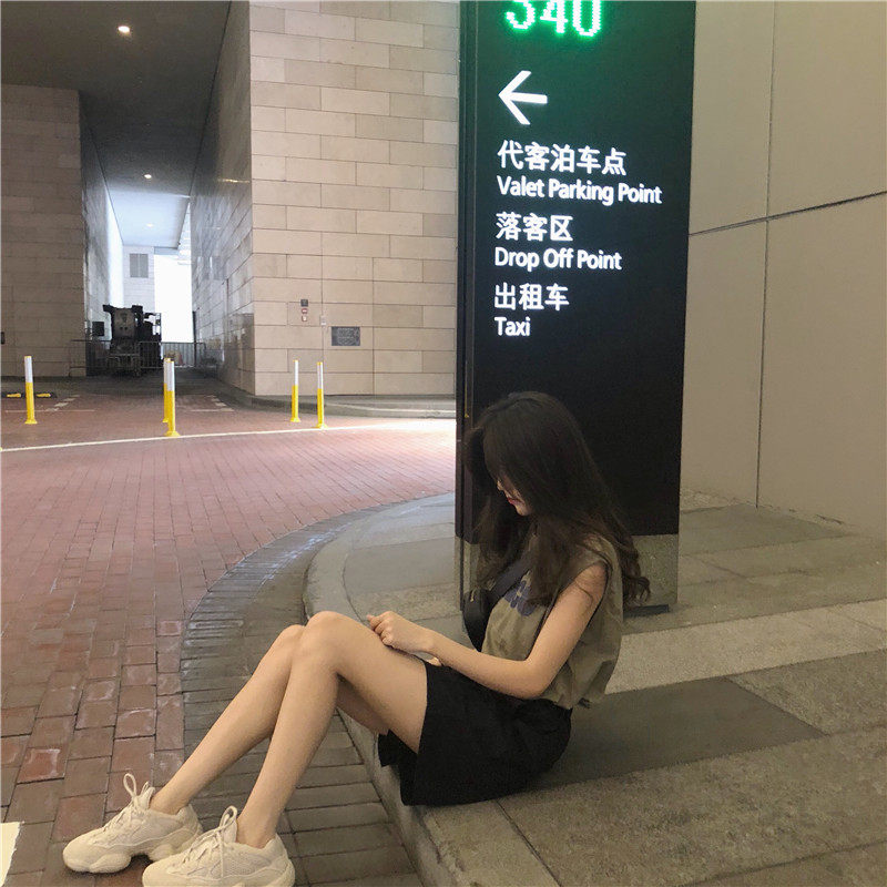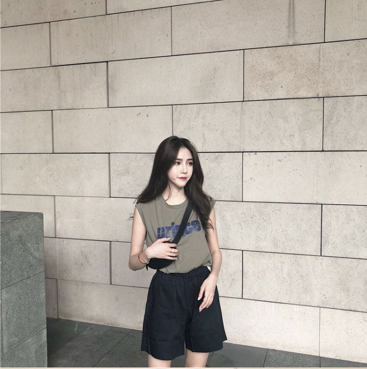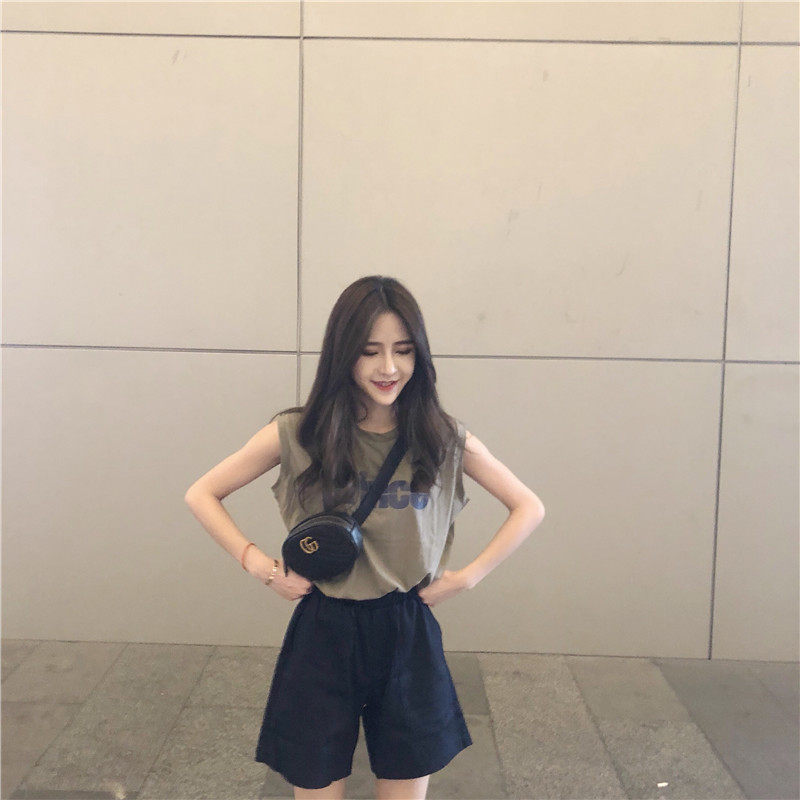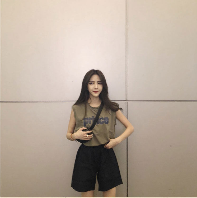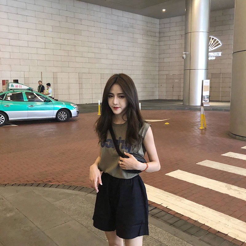 Tide, зеленая майка топ, модная футболка без рукавов, летний жилет, в корейском стиле, свободный крой