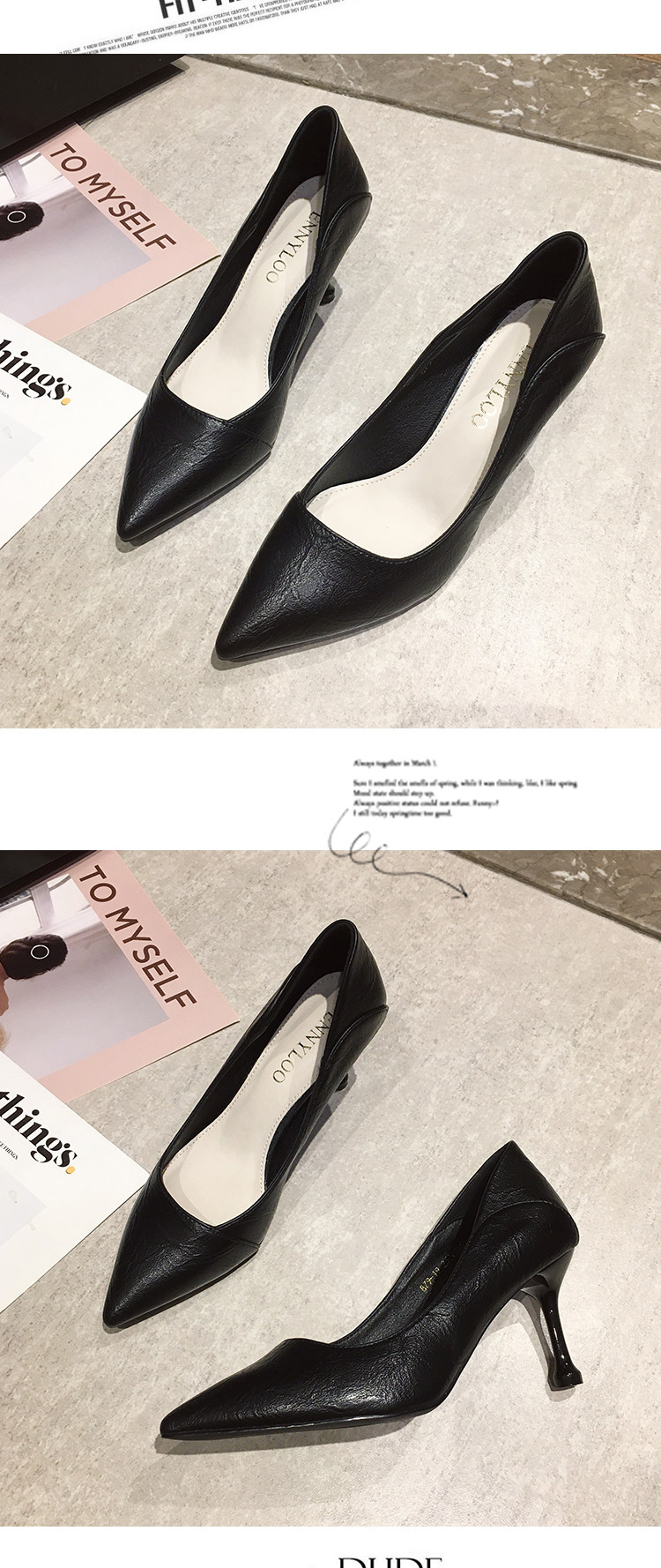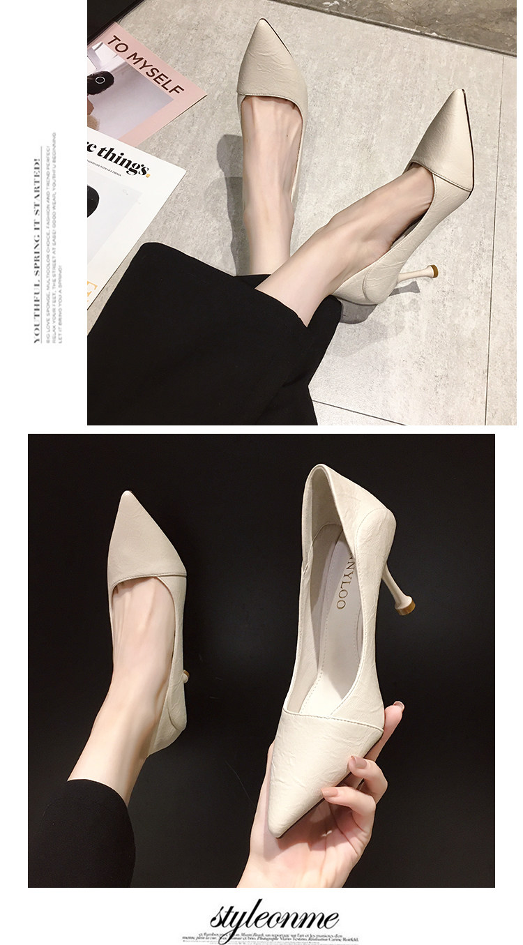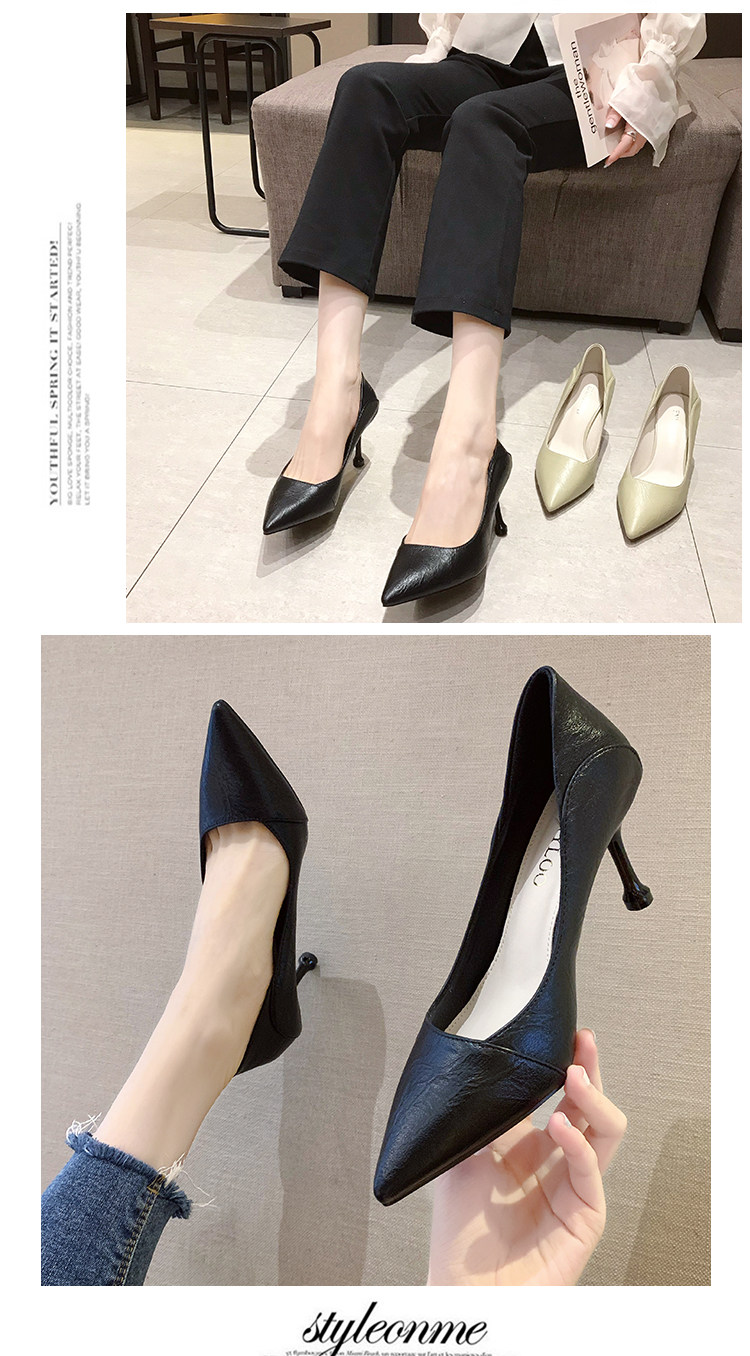 Весенняя универсальная черная обувь с низким вырезом, свежие туфли-шпильки, туфли на высоком каблуке, французский стиль