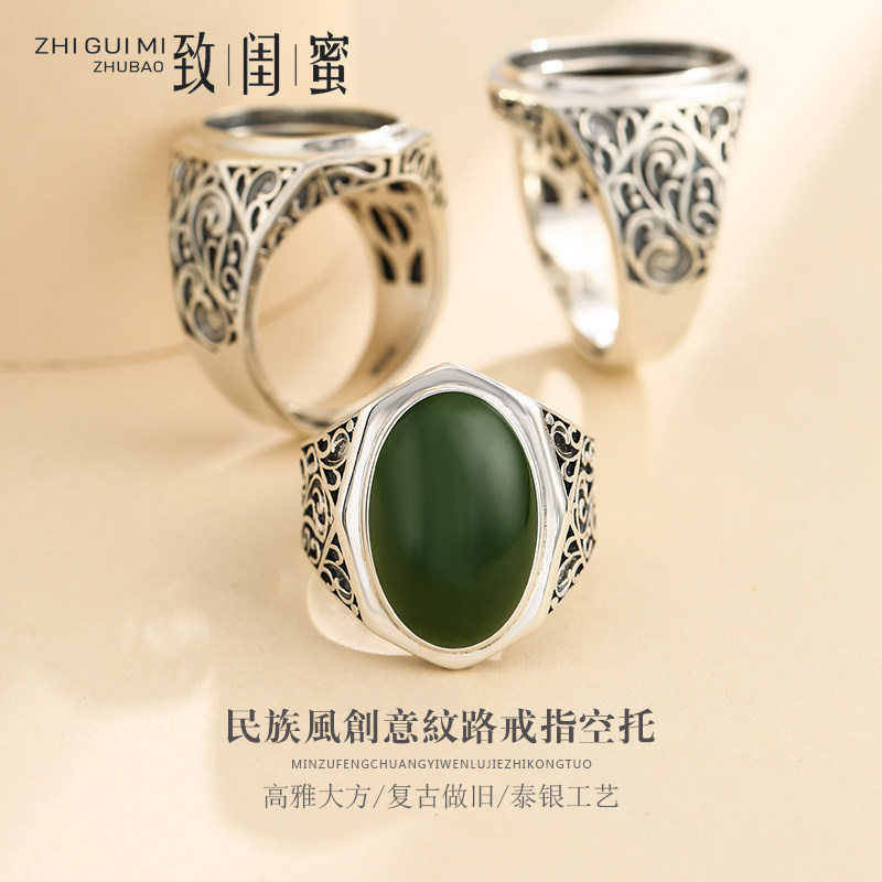 Бирюзовая ретро инкрустация камня из воскового агата, обручальное кольцо, серебро 925 пробы, DIY
