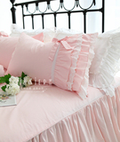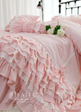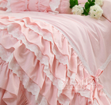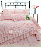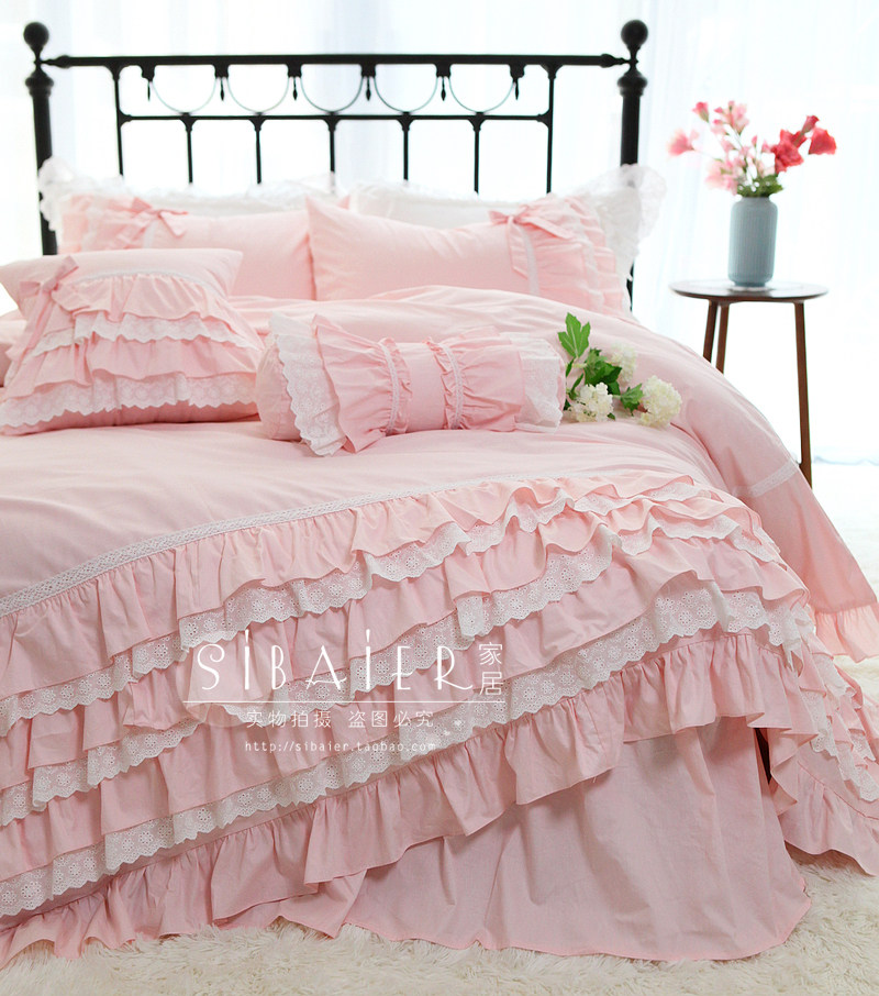Розовое хлопковое одеяло для принцессы с бантиком, пододеяльник, покрывало, комплект, в корейском стиле, цветочный принт, кружевное платье, 4 предмета