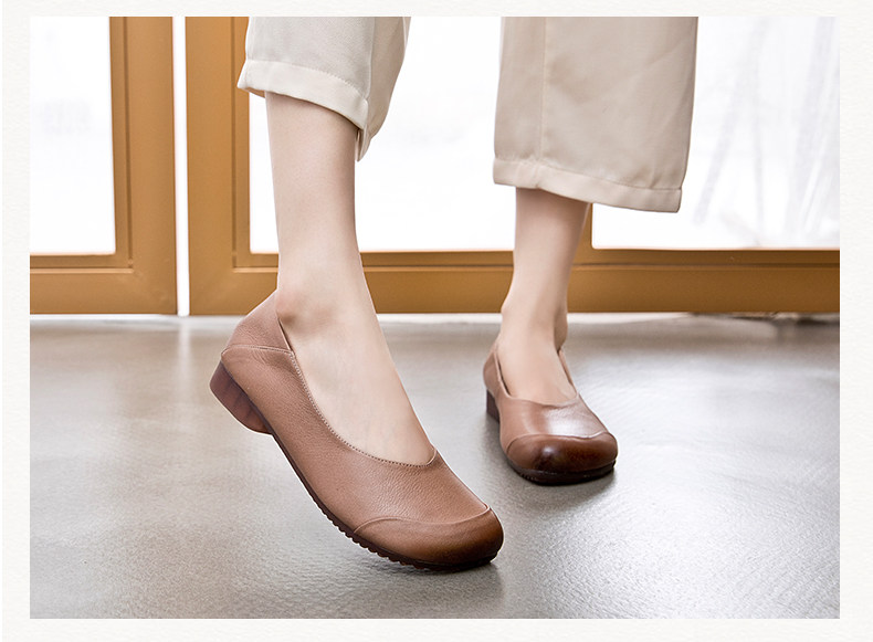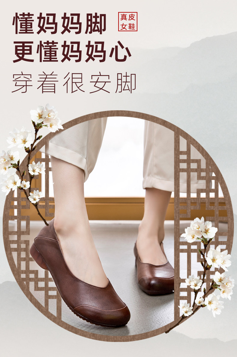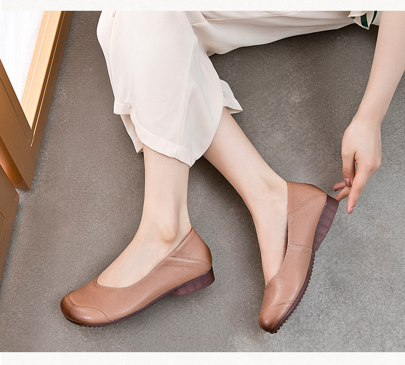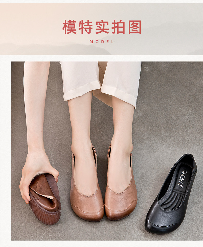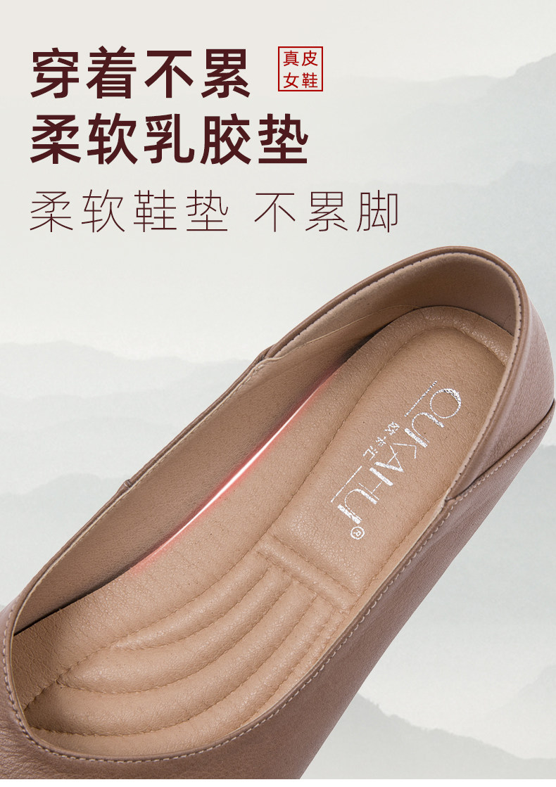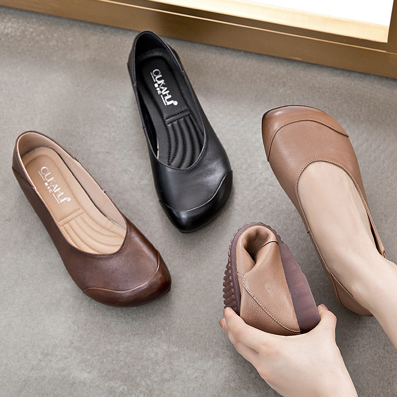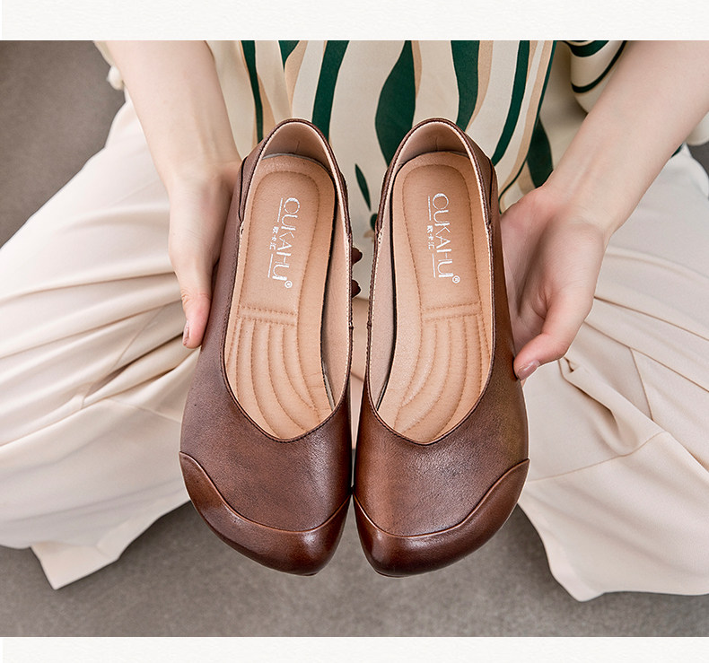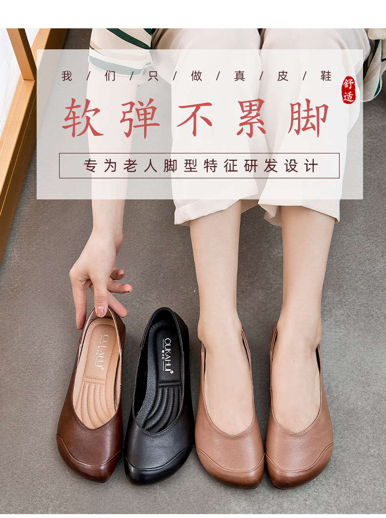 欧卡汇 Плоская подошва комфортная обувь для матери для кожаной обуви, осенняя, из натуральной кожи, для среднего возраста