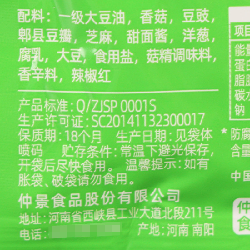 Список ингредиентов: соевое масло 1 -го класса, грибы, ферментированные черные бобы, паста из пиксианской фасоли, кунжут, сладкий соус с лапшой, лук, ферментированные бобы, соевые бобы, съедобная соль, грибные приправы, специи, перец чили и т. Д., На основе фактической информации о внешней упаковке продукта.