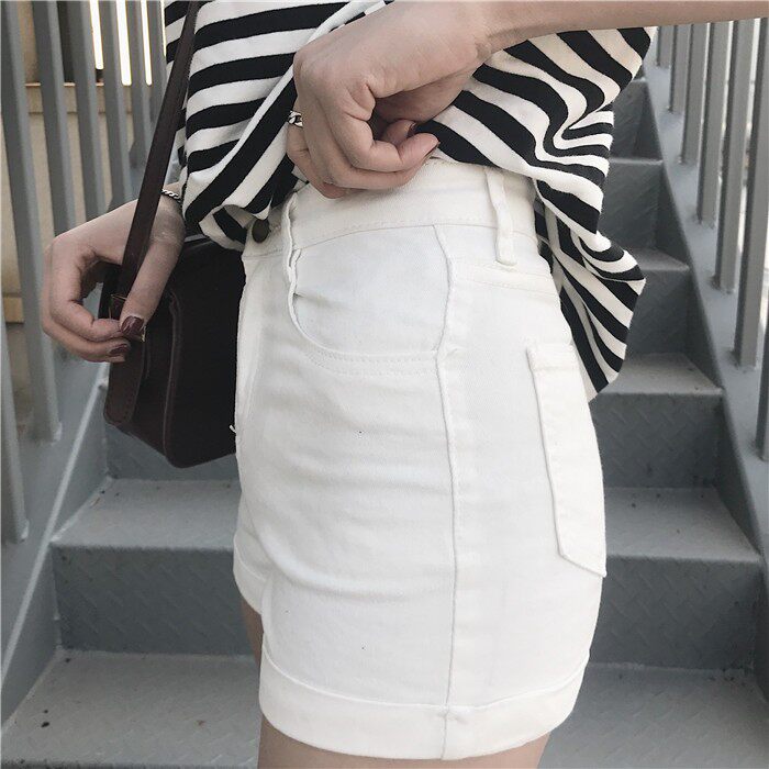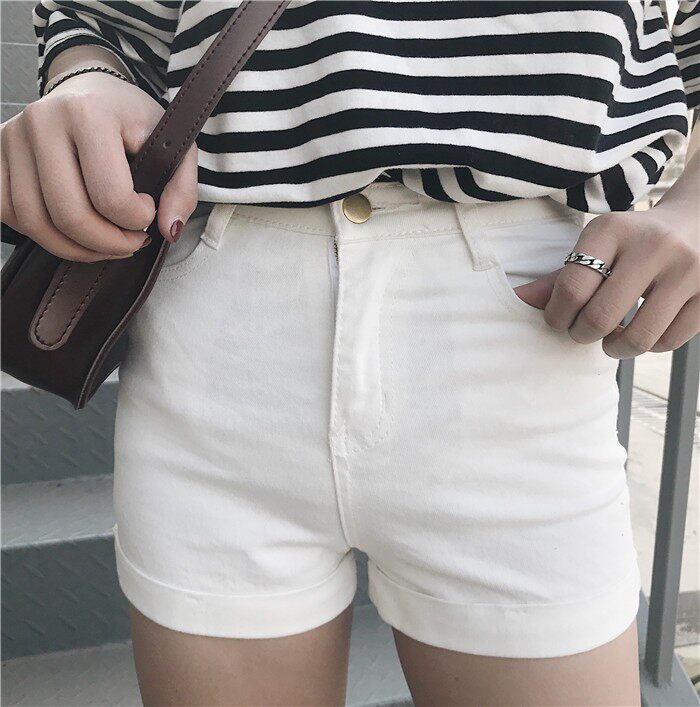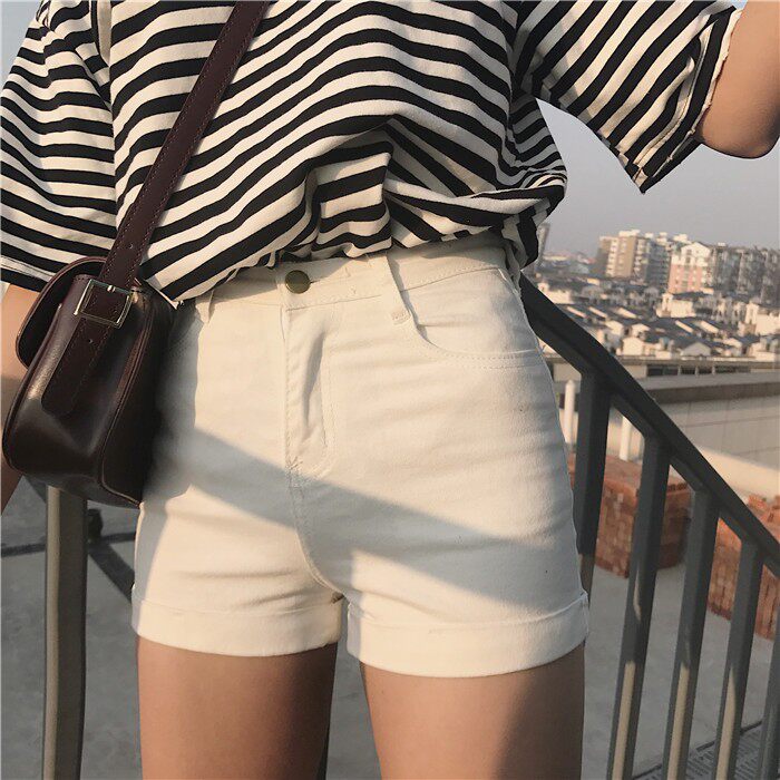 Летняя одежда, эластичные черные штаны, цветные джинсы, шорты, в обтяжку, с акцентом на бедрах, по фигуре, высокая талия