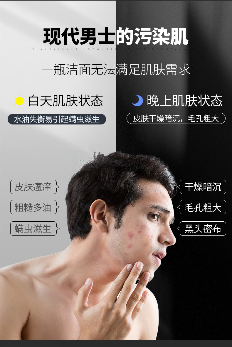 极男 Мужское очищающее молочко, осветляющий увлажняющий комплект, контроль жирного блеска, анти-акне, полный комплект, официальный продукт