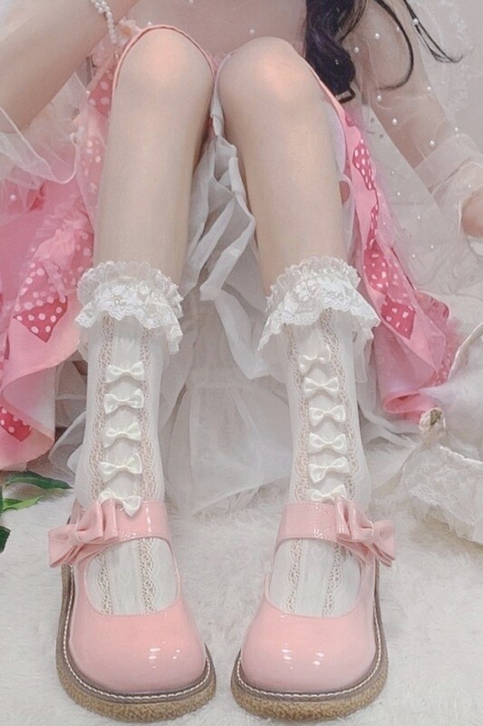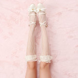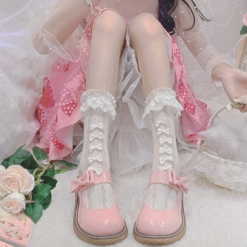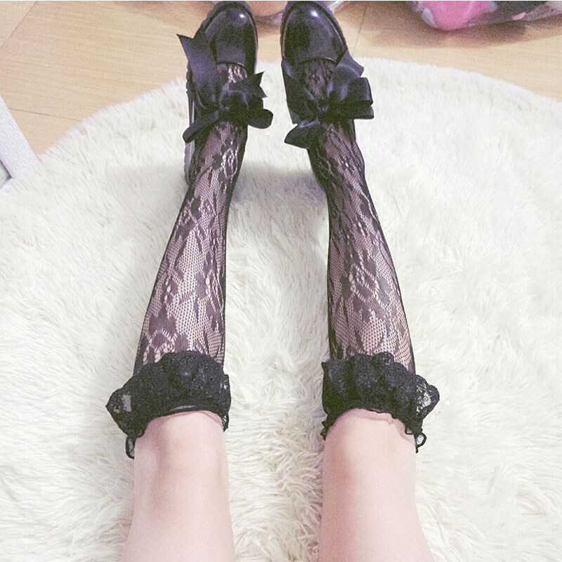 Японские белые ретро кружевные носки для школьников, стиль Лолита, длина миди, кружевное платье