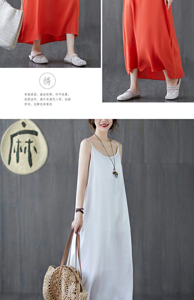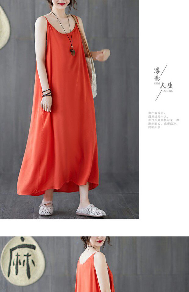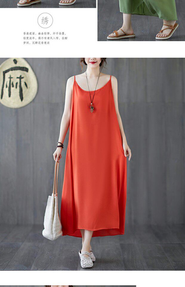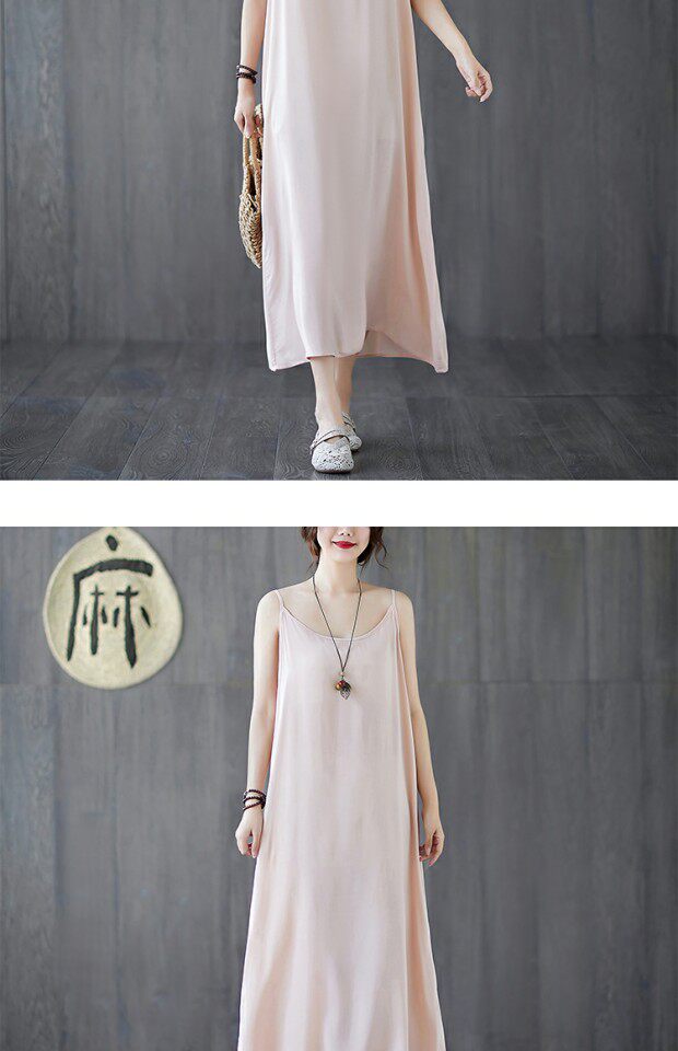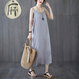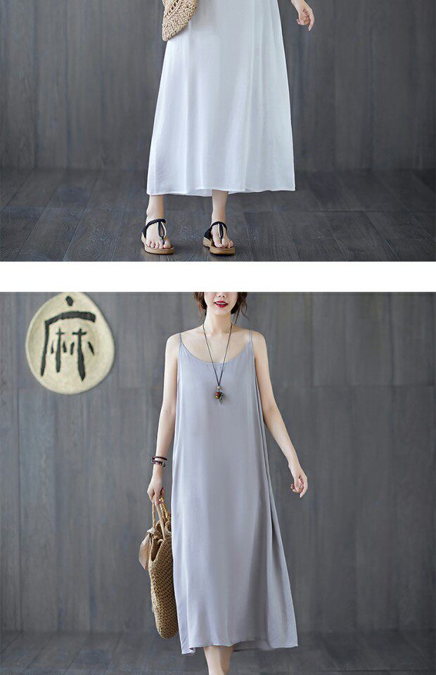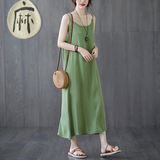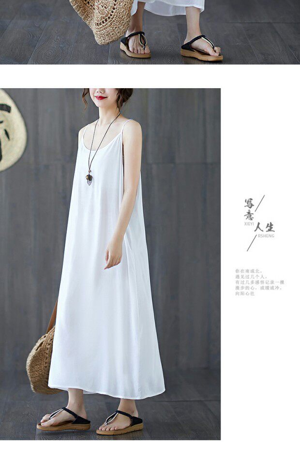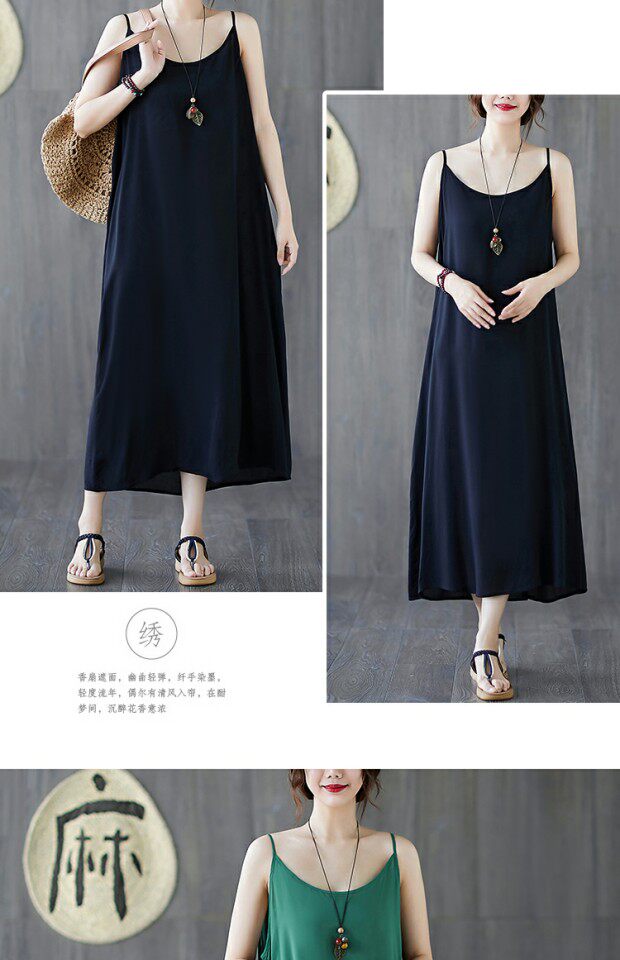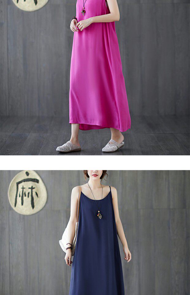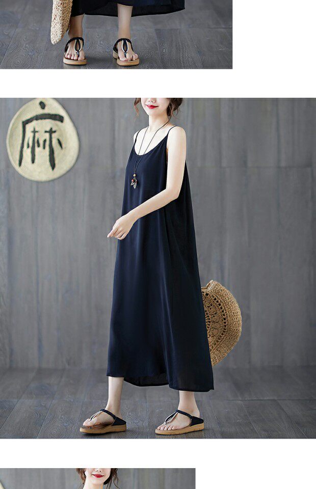 Летний топ с чашечками, платье без рукавов, многоцветная базовая длинная юбка, из хлопка и льна, оверсайз, средней длины