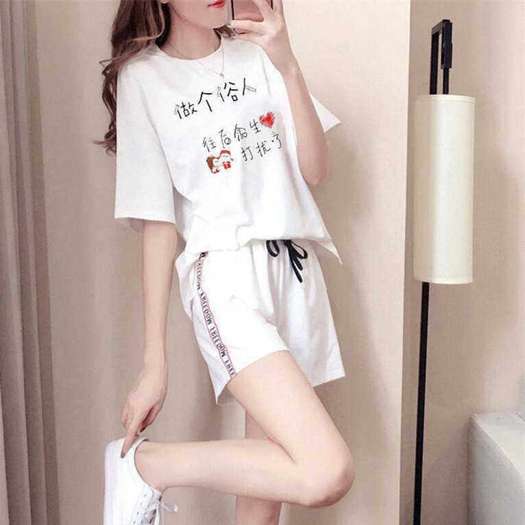 Летний брендовый спортивный костюм, модный комплект, 2020, популярно в интернете, свободный крой, короткий рукав