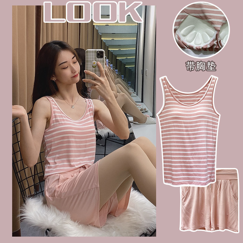 Топ с чашечками, бюстгалтер, летняя тонкая пижама, жилет без рукавов, комплект, эффект подтяжки