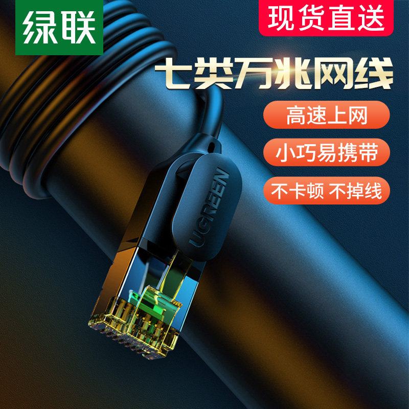 绿联 Семь категорий из 10000 线 сетевые кабели переносятся на стене Home Soft Cat7 Компьютерная широкополосная медная экранирование 1 метра 3 метра 5