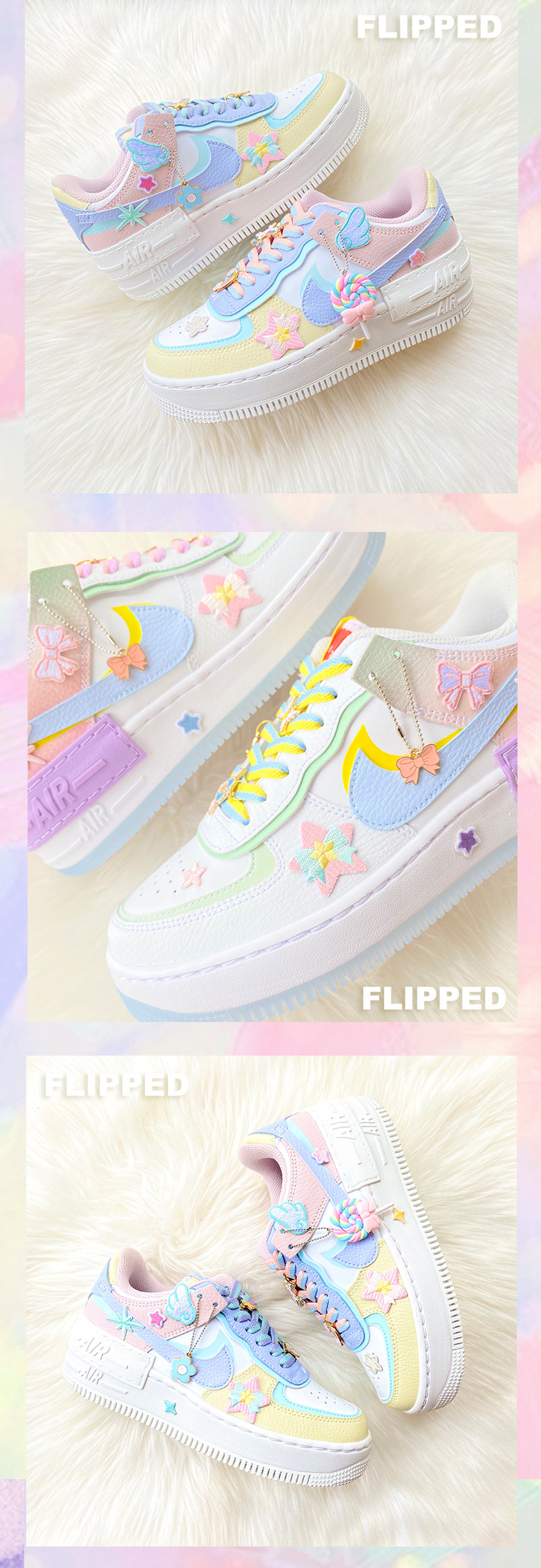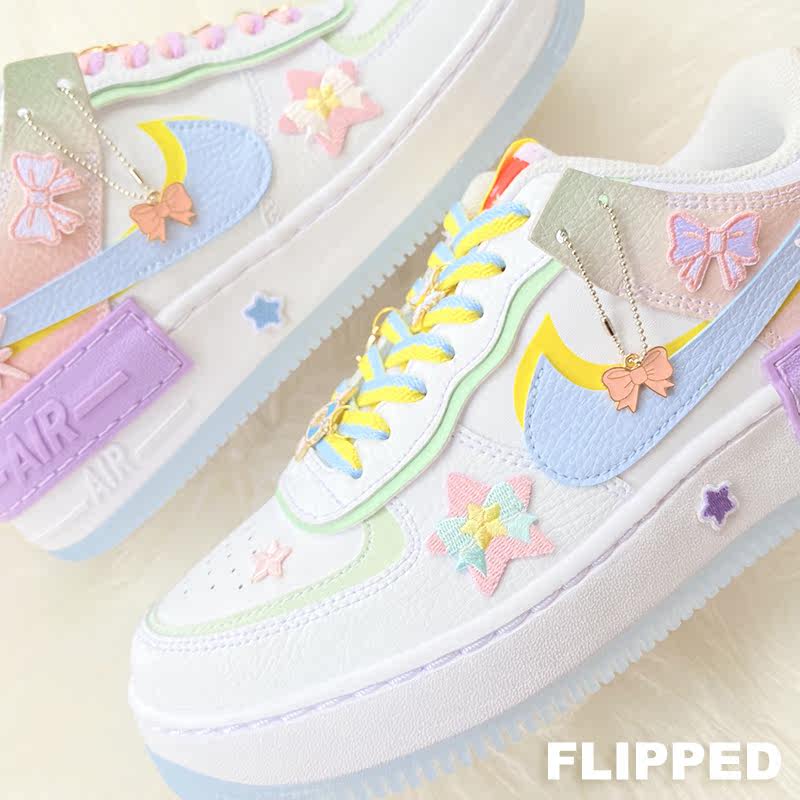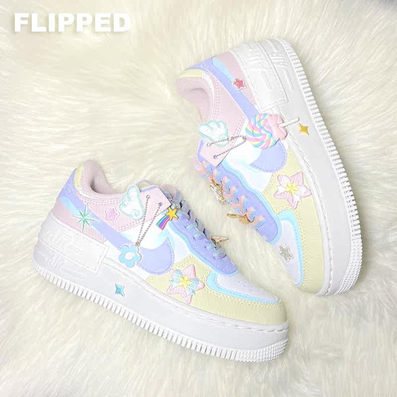 Перевернутый магазин домашняя адаптация 1970 -х годов AF1 Симпатичный макарон порошок синий узел бабочек узел