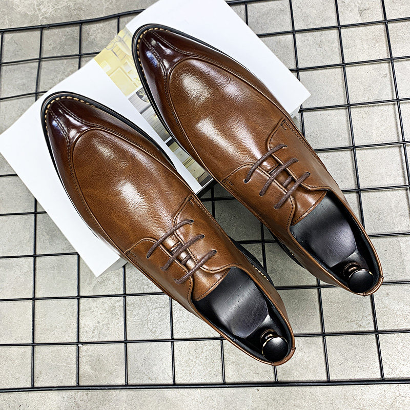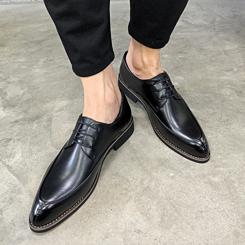 Кожаная обувь мужская корейская версия дышащей заостренной прически Master Trend Business Увеличение в британском женихе Свадебные мужчины маленькие кожаные туфли