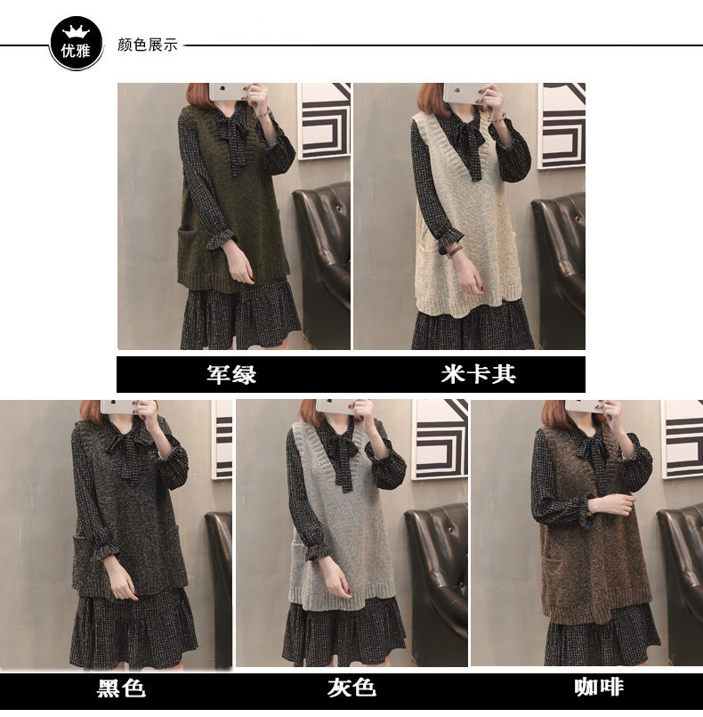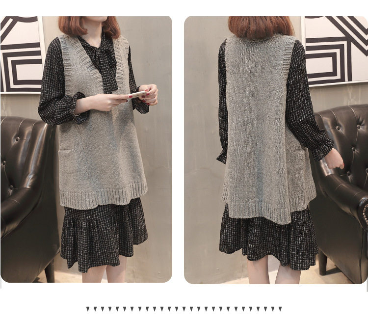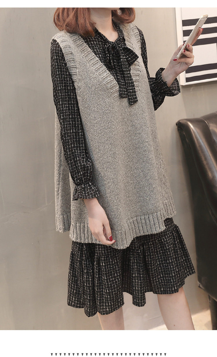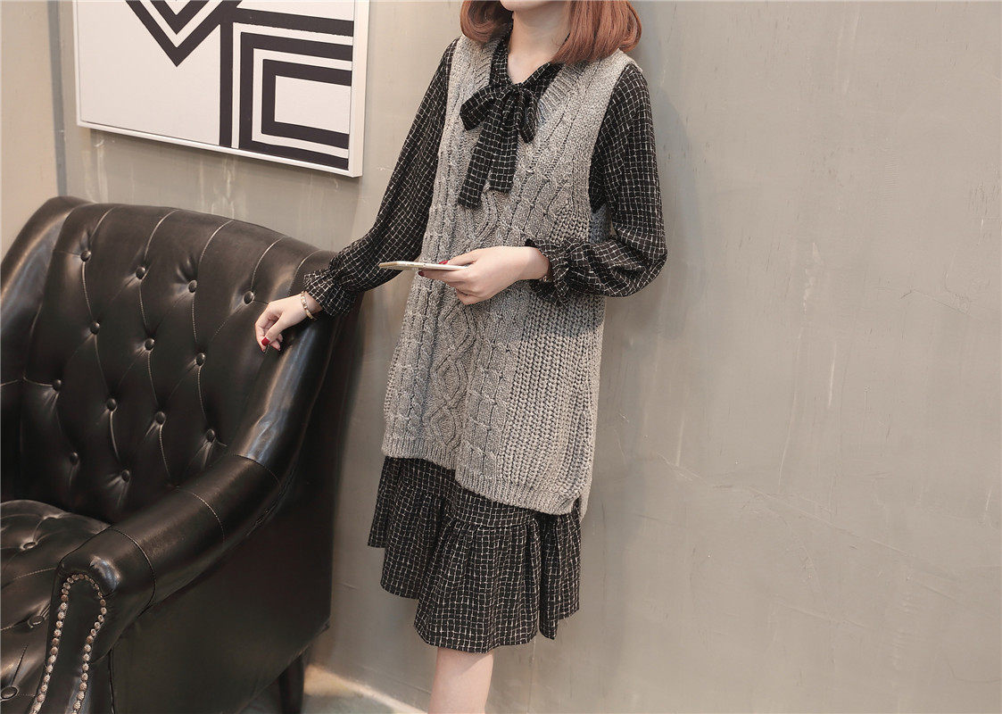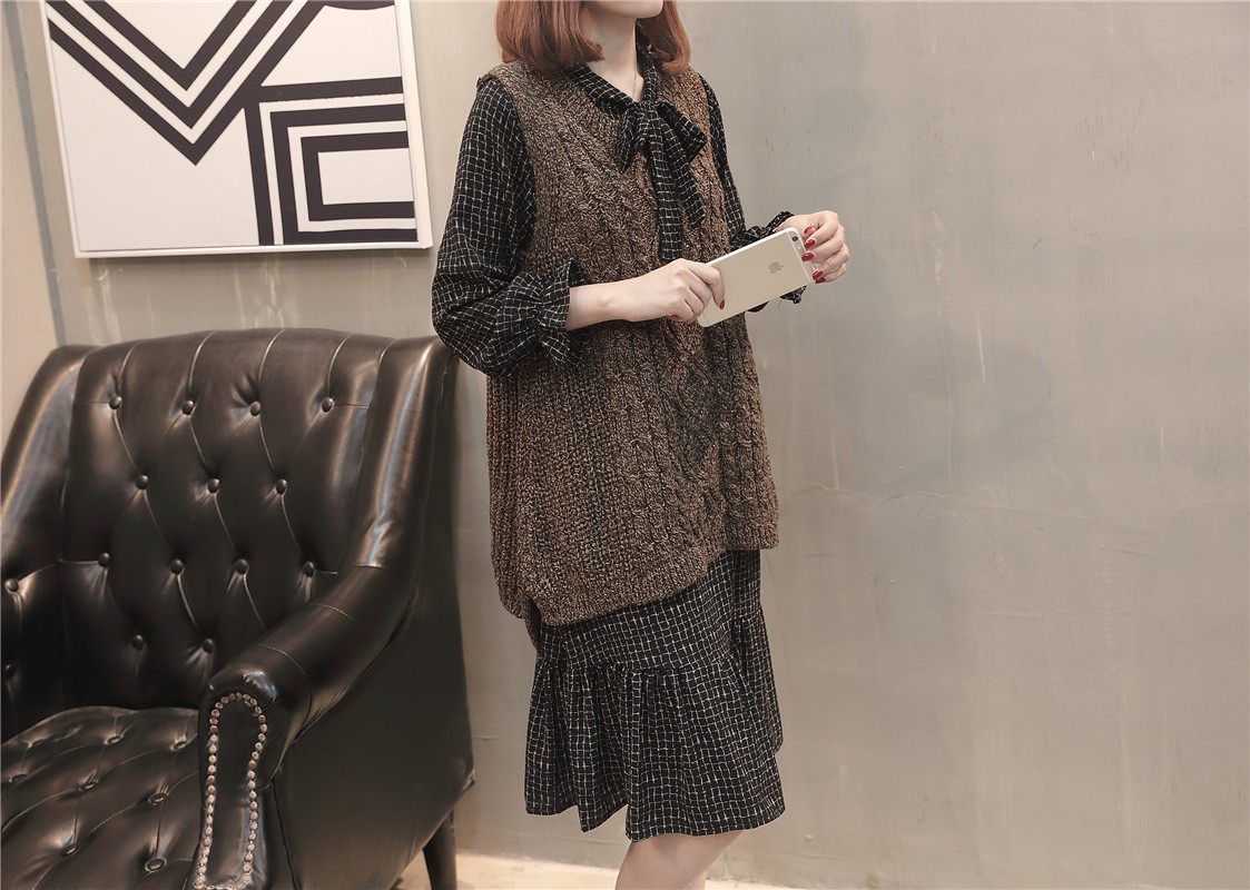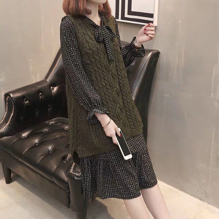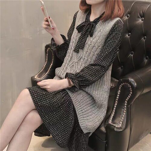Демисезонный осенний комплект, свитер, трикотажное платье без рукавов, жилет, коллекция 2023, городской стиль