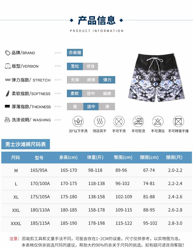 亦美珊 Шорты, пляжные штаны для отдыха, свободный прямой крой, большой размер