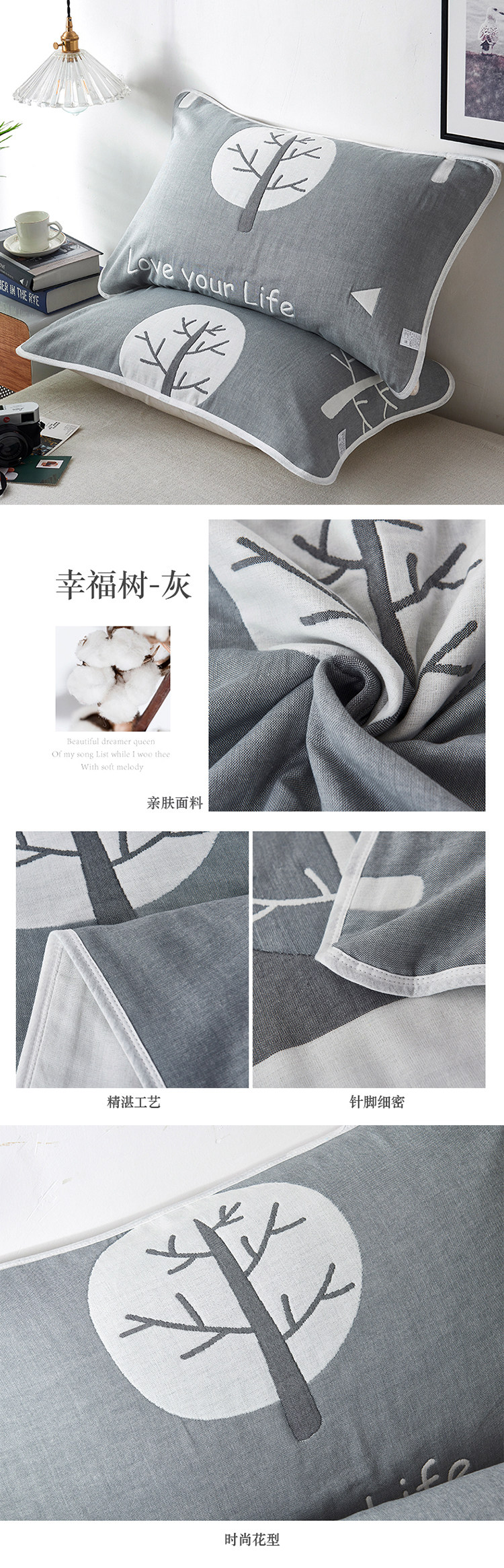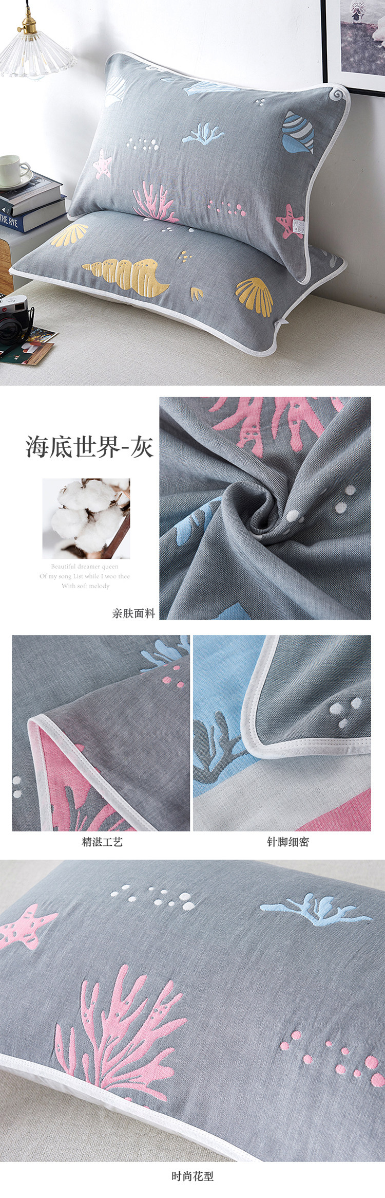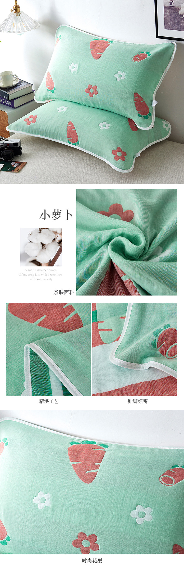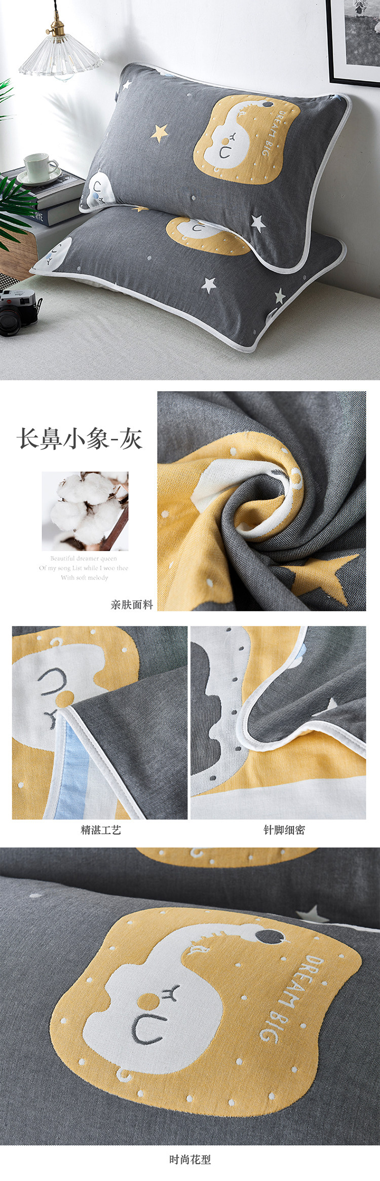 Хлопковая марлевая мультяшная подушка, универсальный платок, увеличенная толщина, для влюбленных