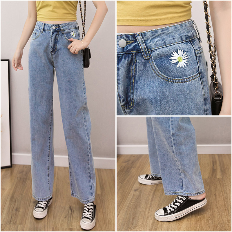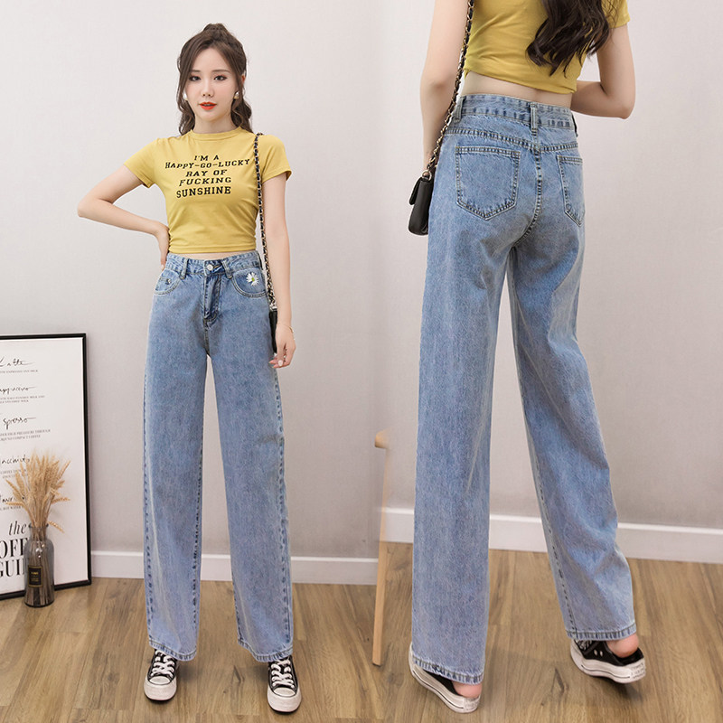 Летние джинсы, штаны, 2021 года, свободный прямой крой, высокая талия