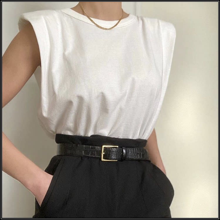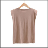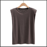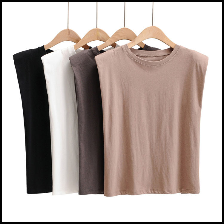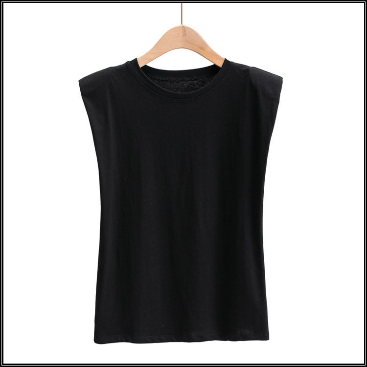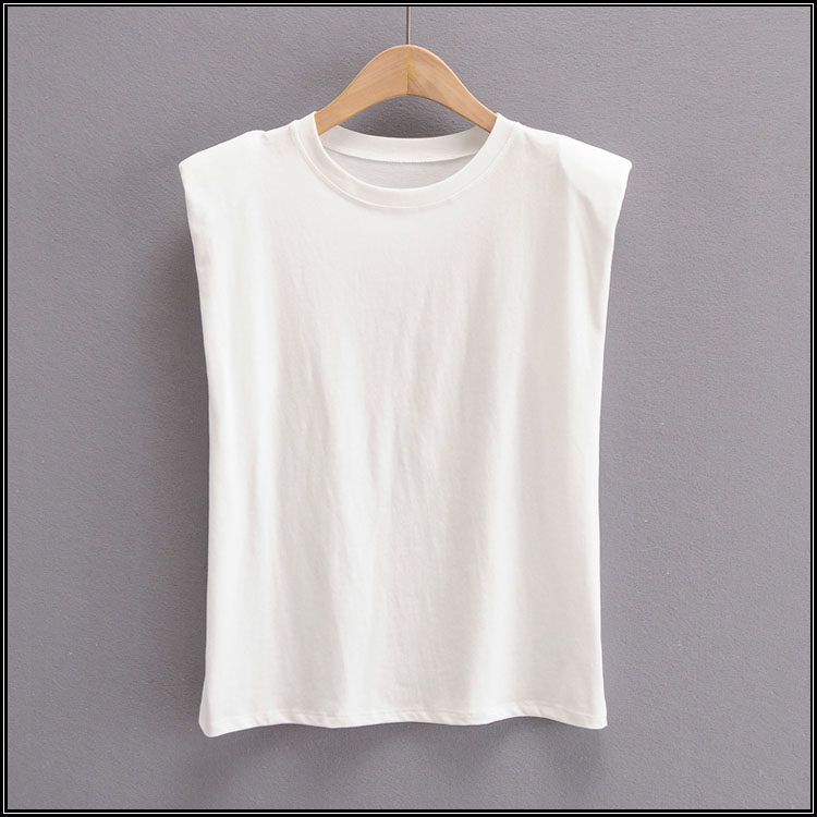Брендовые дизайнерские наплечники, жилет без рукавов, универсальная футболка, европейский стиль, тренд сезона, свободный крой