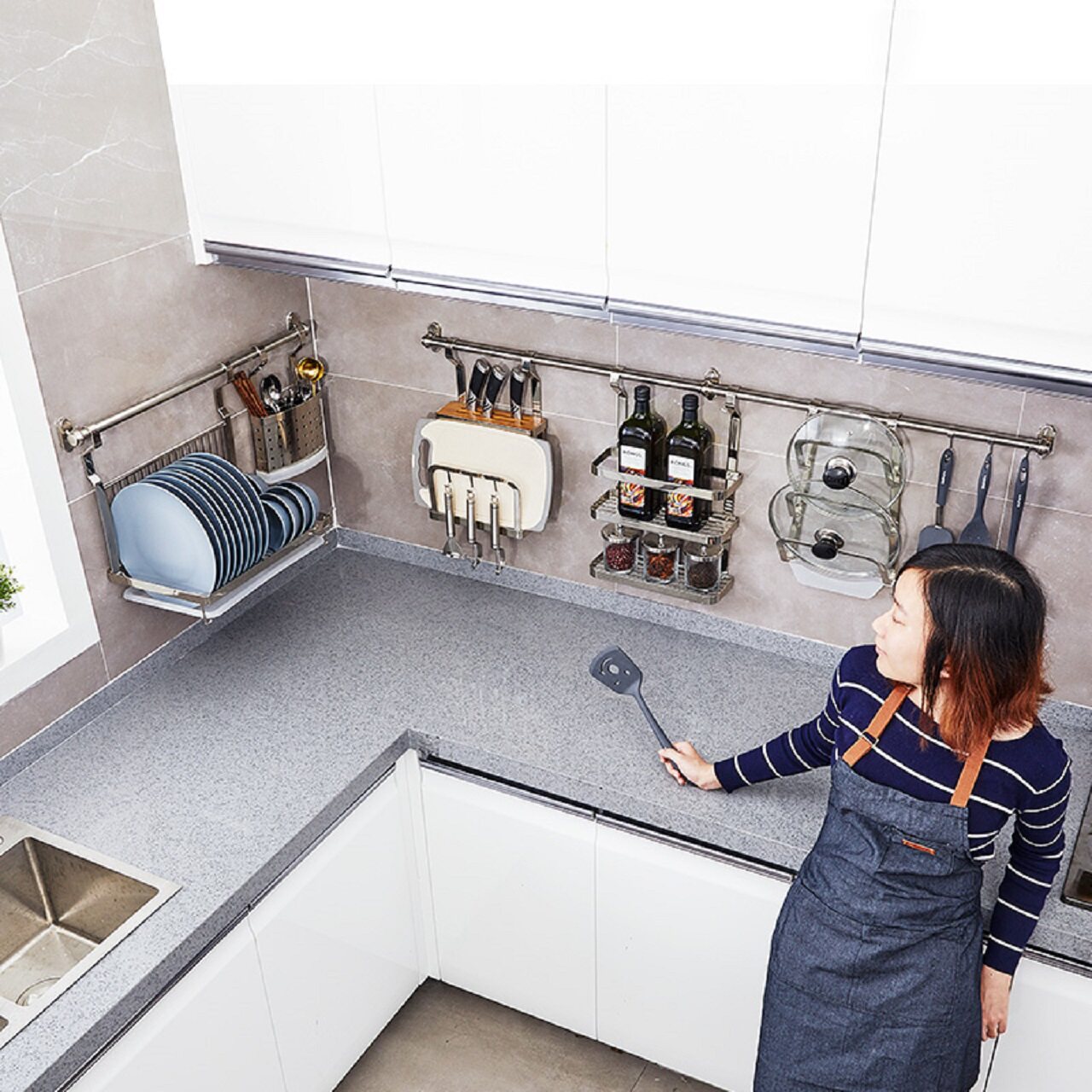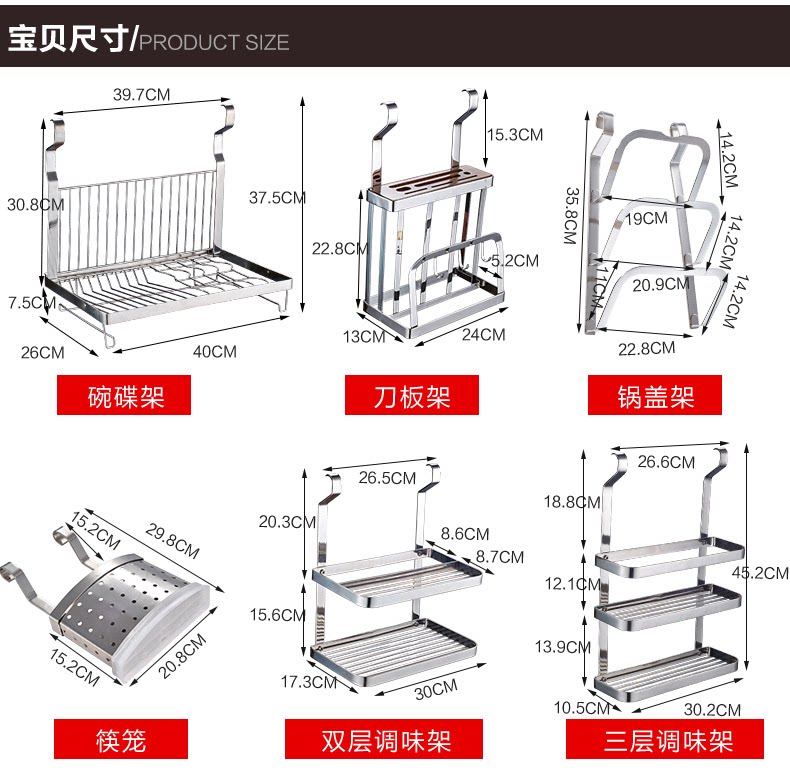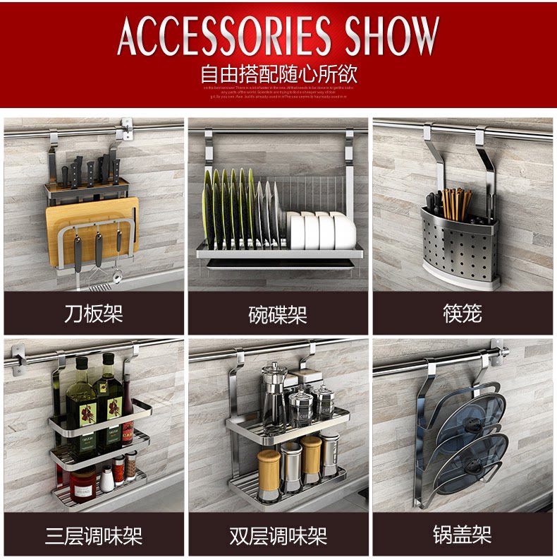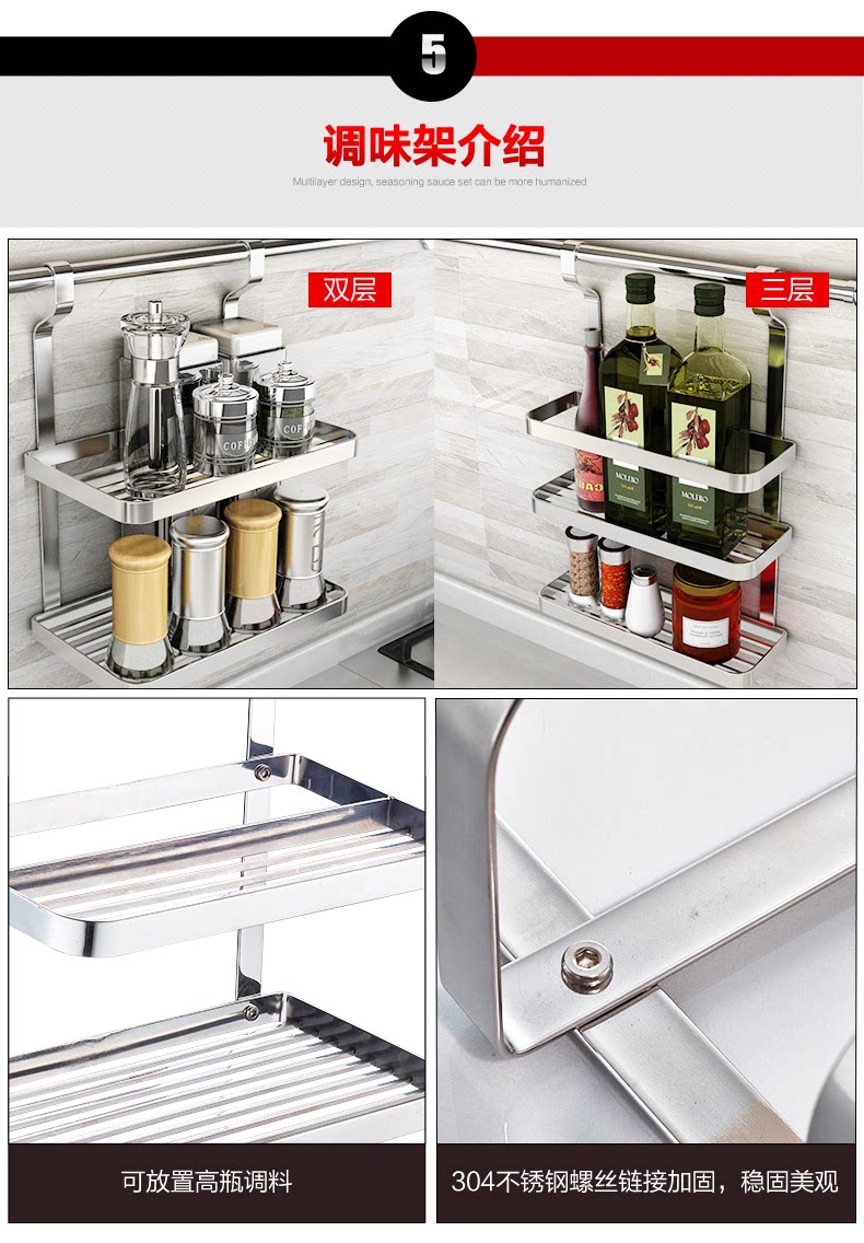 Кухня 304 из нержавеющей стали стальная стена -стена -настенная стена -хунга Многофункциональная многофункциональная функция может положить крышку на приправу и ножную стойку