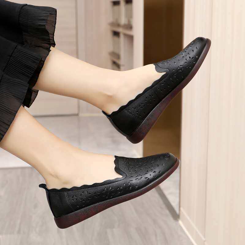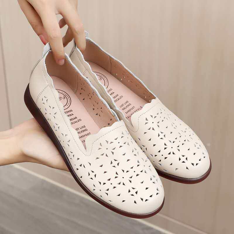 Сандалии, комфортная плоская подошва спортивная обувь для матери, из натуральной кожи, мягкая подошва, для среднего возраста