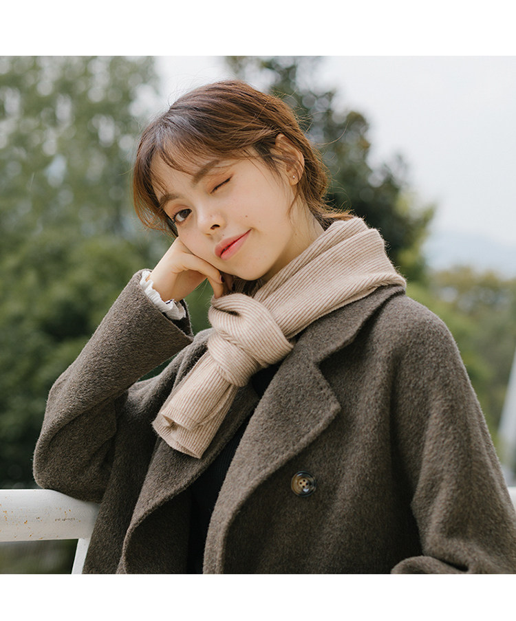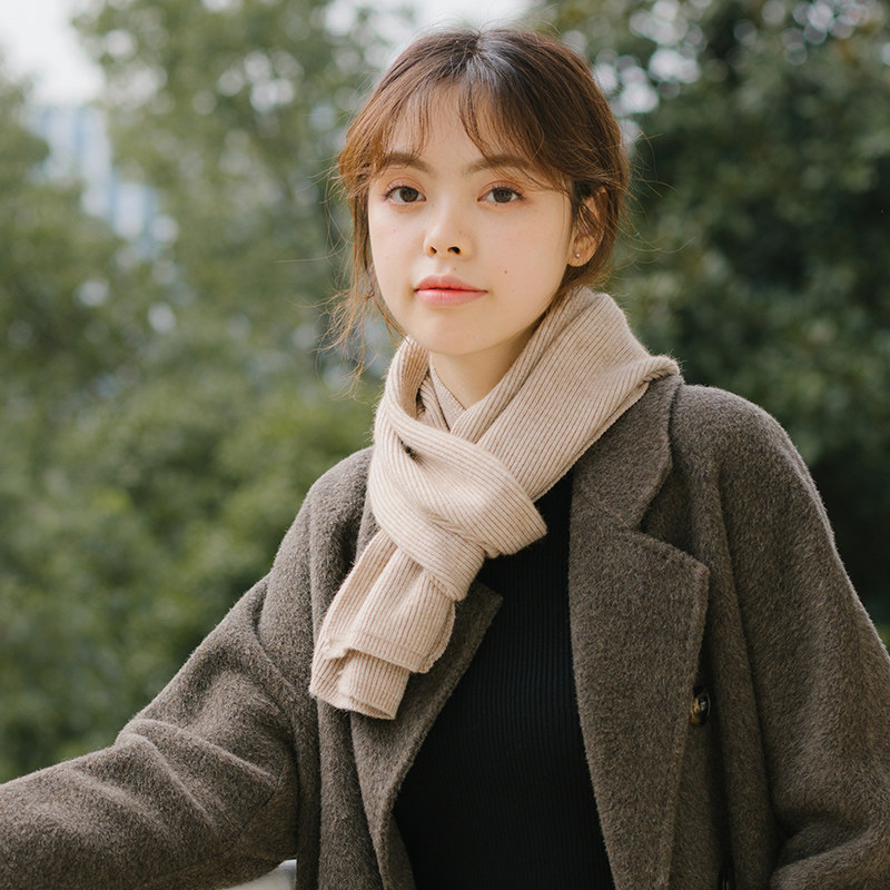 Демисезонный универсальный короткий тонкий брендовый трикотажный удерживающий тепло зимний шарф, в корейском стиле